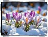 Jasnofioletowe, Krokusy, Śnieg - Zdjęcia