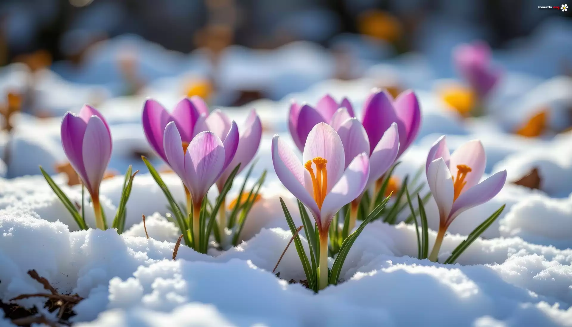 Kwiat Jasnofioletowe, Krokusy, Śnieg