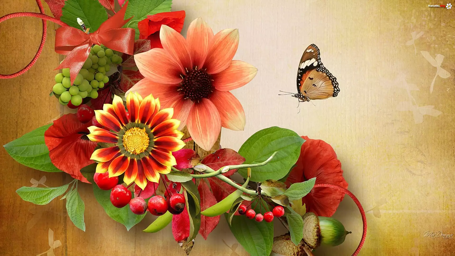 Jesienne, Kwiaty, Motyl, Art - Zdjęcia