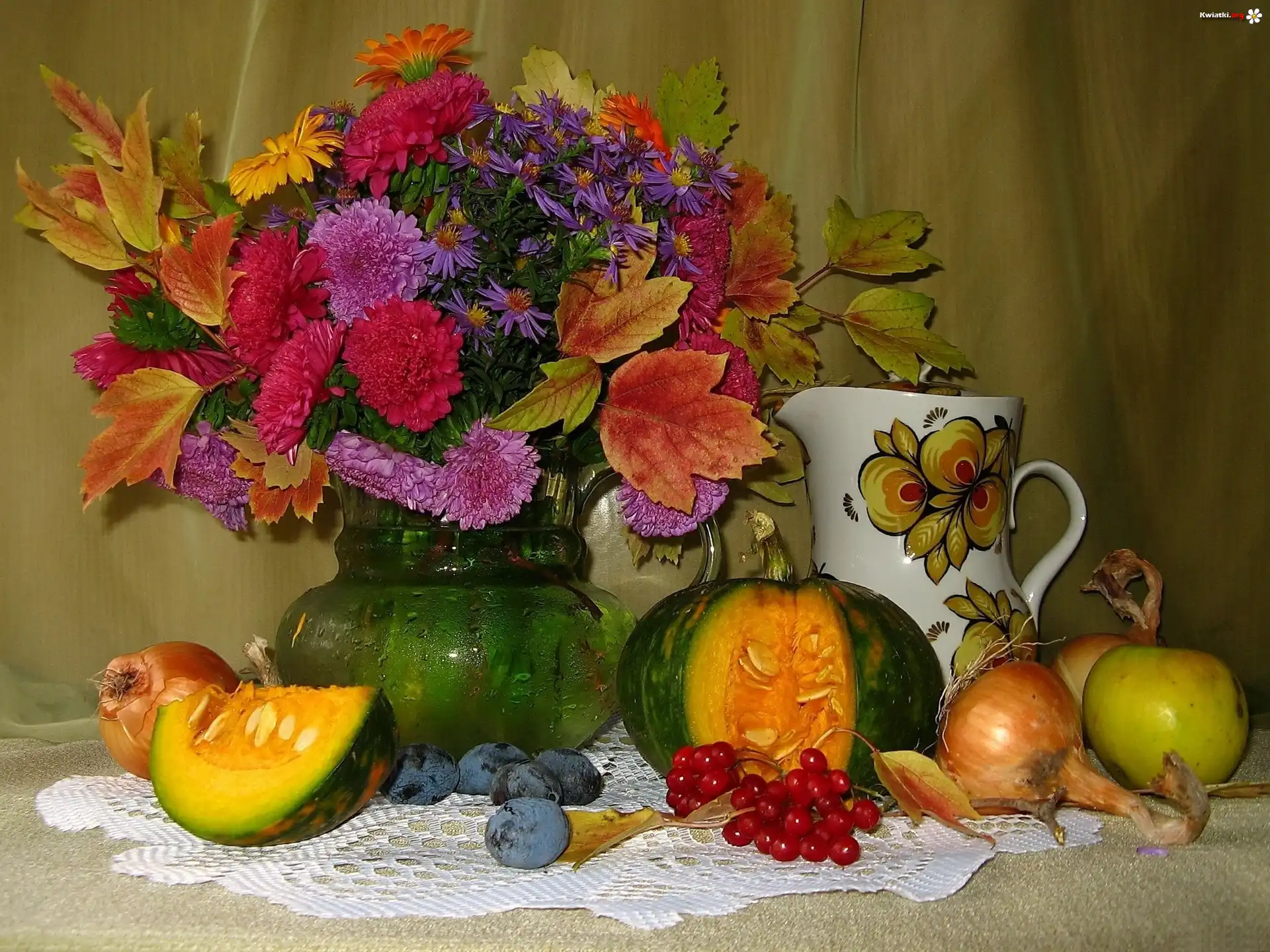 Kwiat Jesienny, Bukiet, Owoce, Warzywa