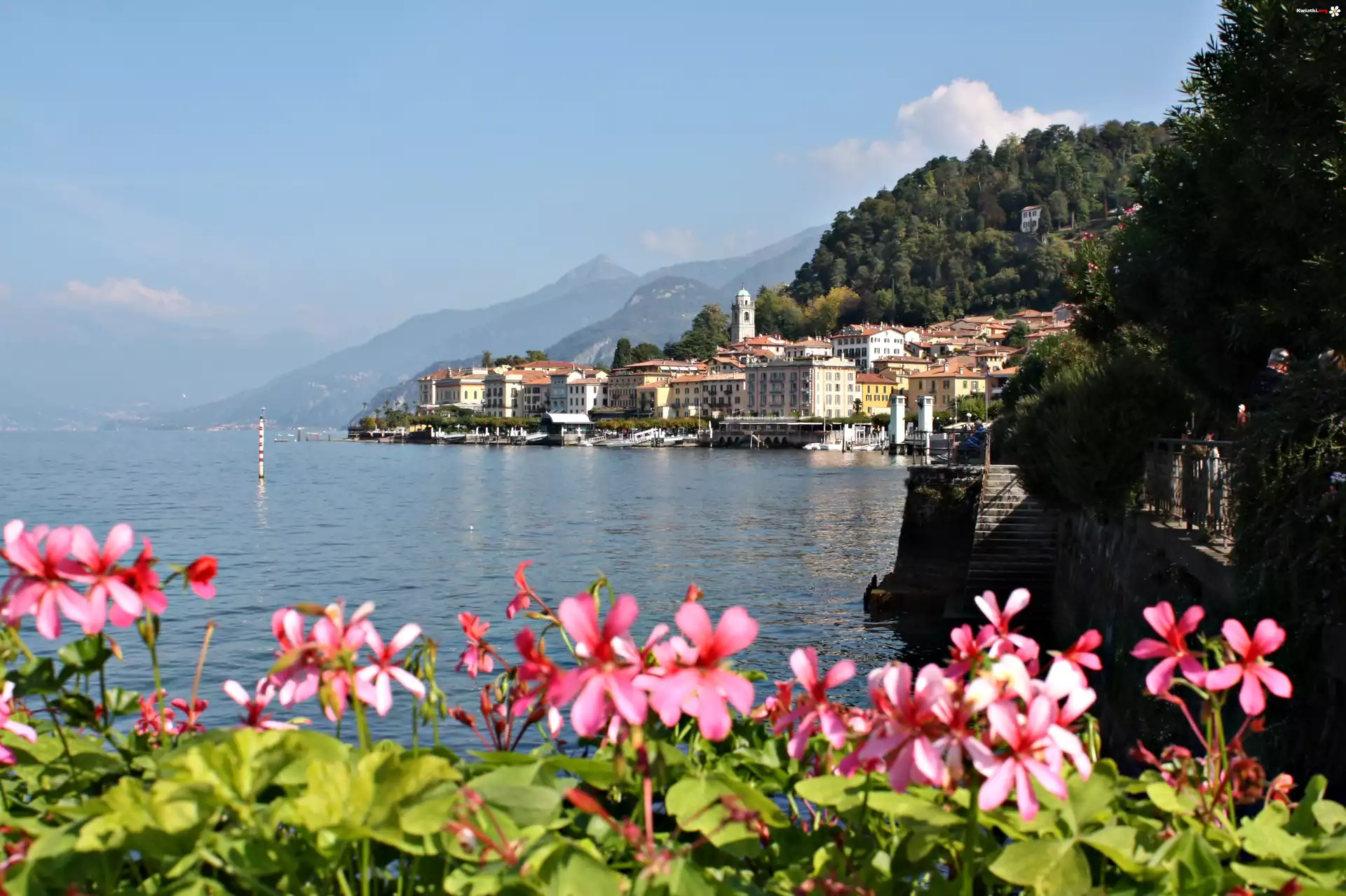 Jezioro, Como, Kwiatki, Bellagio, Włochy - Zdjęcia