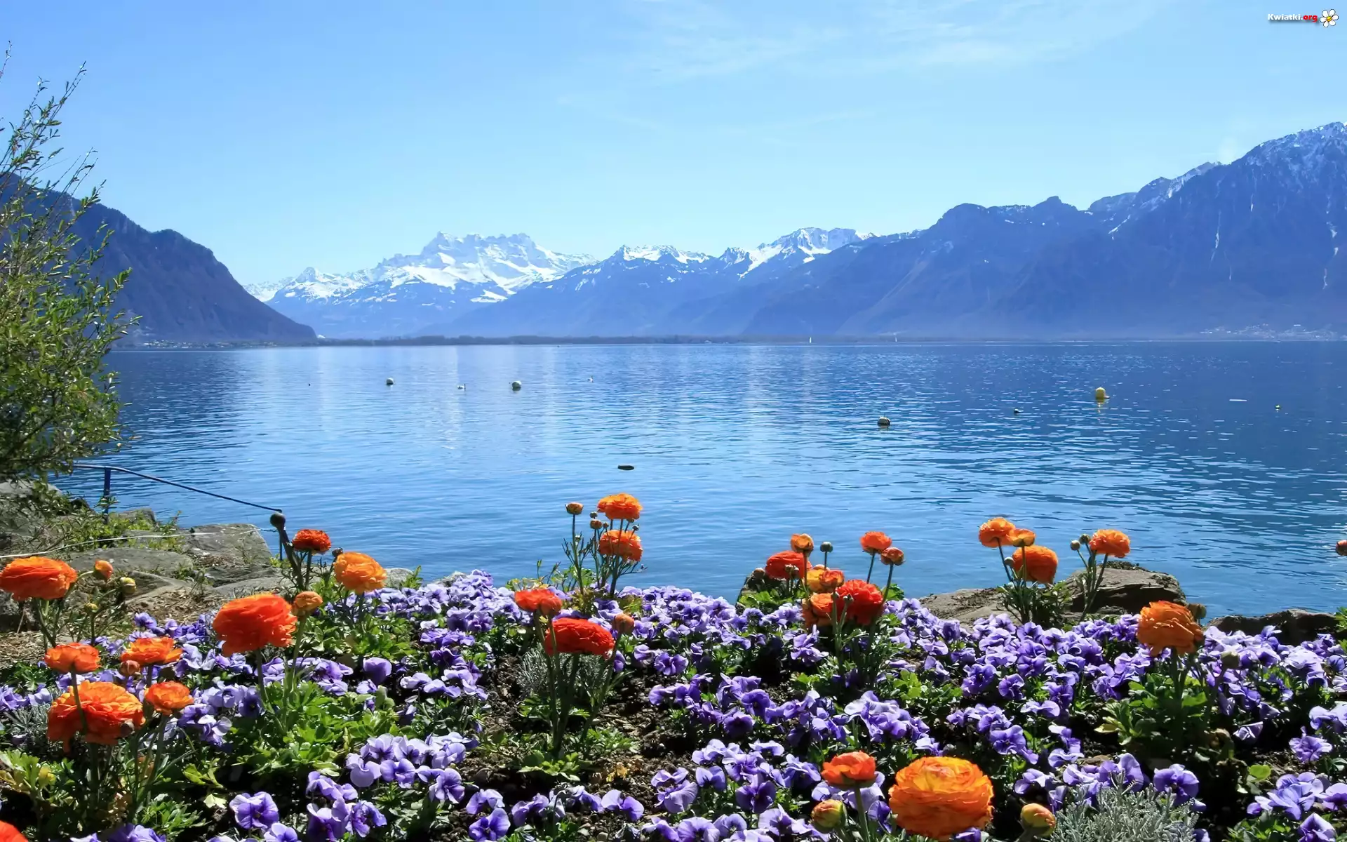 Jezioro, Góry, Kwitnące, Kwiaty - Zdjęcia
