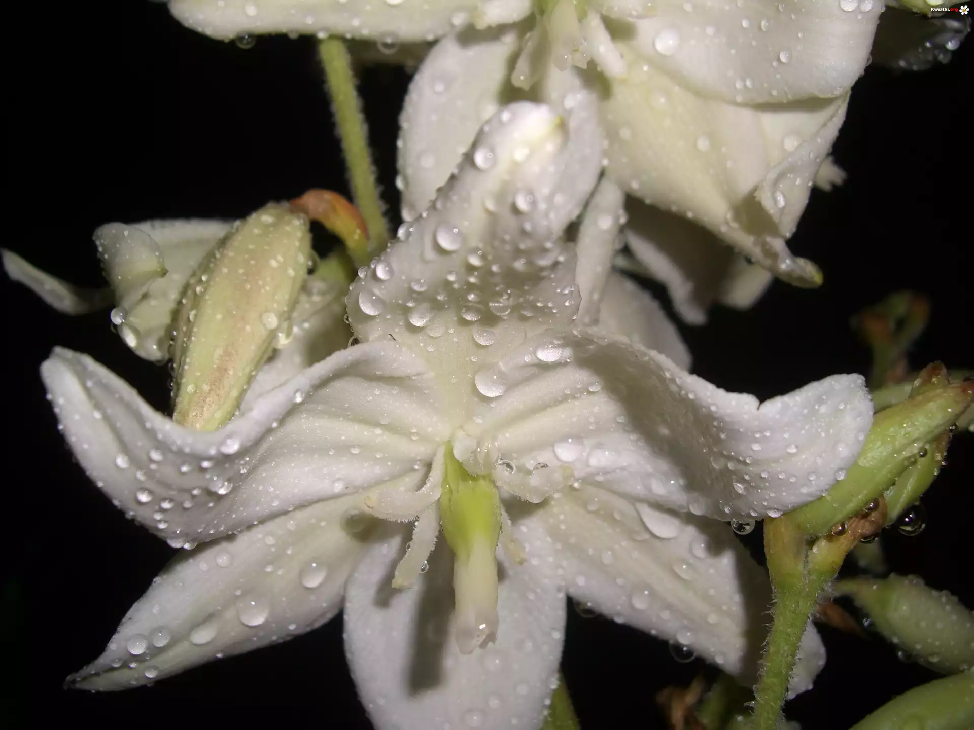 Kwiat Juka, Karolińska, Białe, Kwiaty, Krople, Deszczu