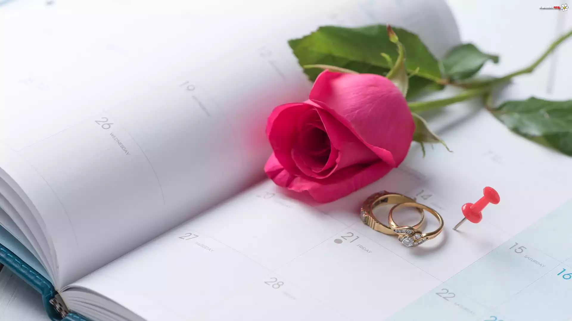 Kwiat Róża, Kalendarz, 14 luty, Walentynki, Biżuteria, Pierścionki, Pinezka
