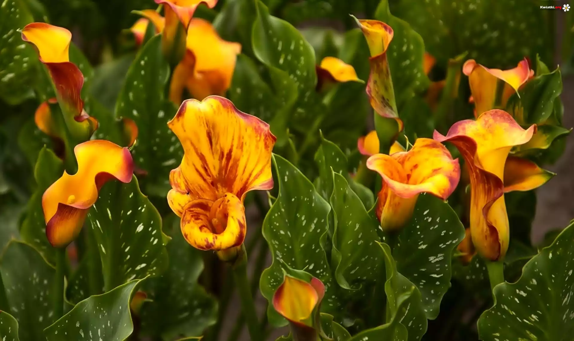 Pomarańczowe, Kalie, Liście - Zdjęcia