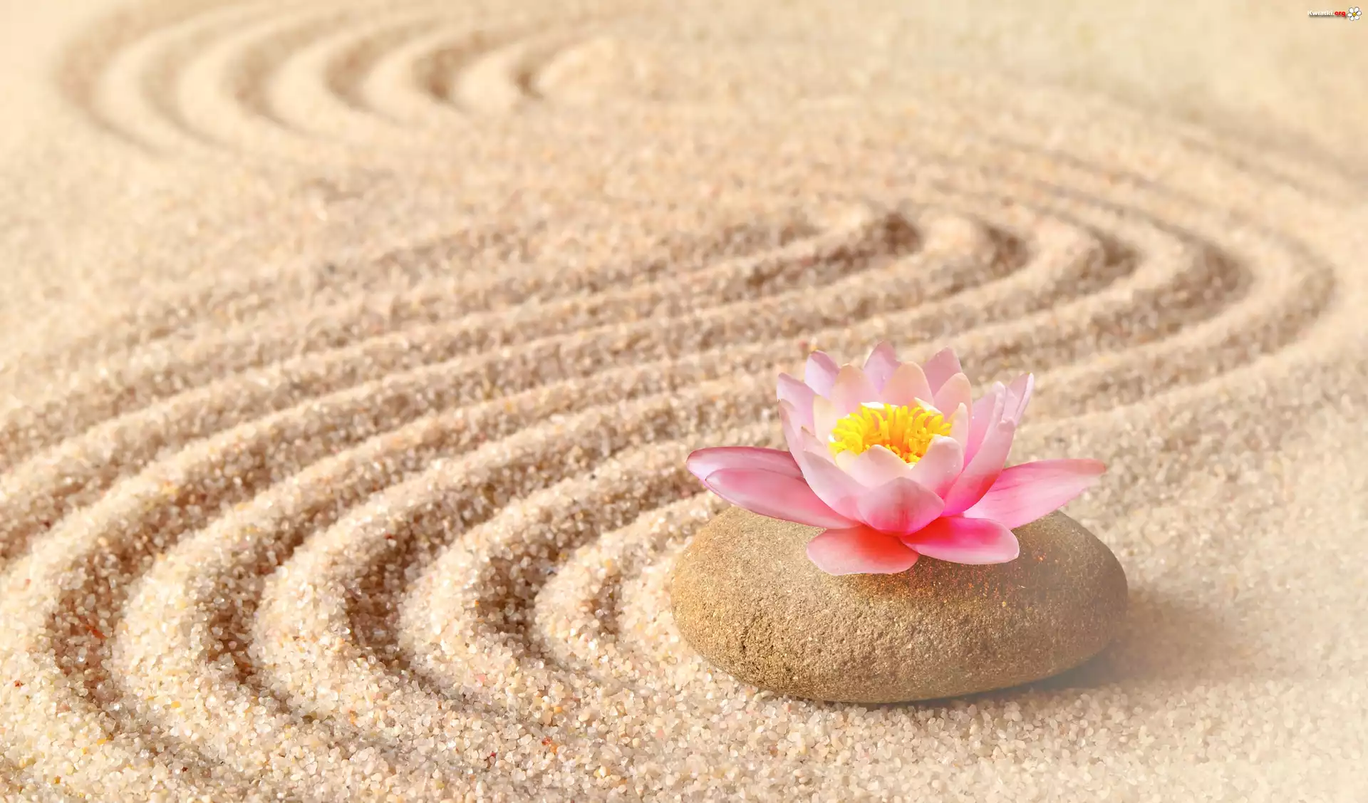 Kamień, Piasek Linie, Kwiat, Lotosu, Różowy - Zdjęcia