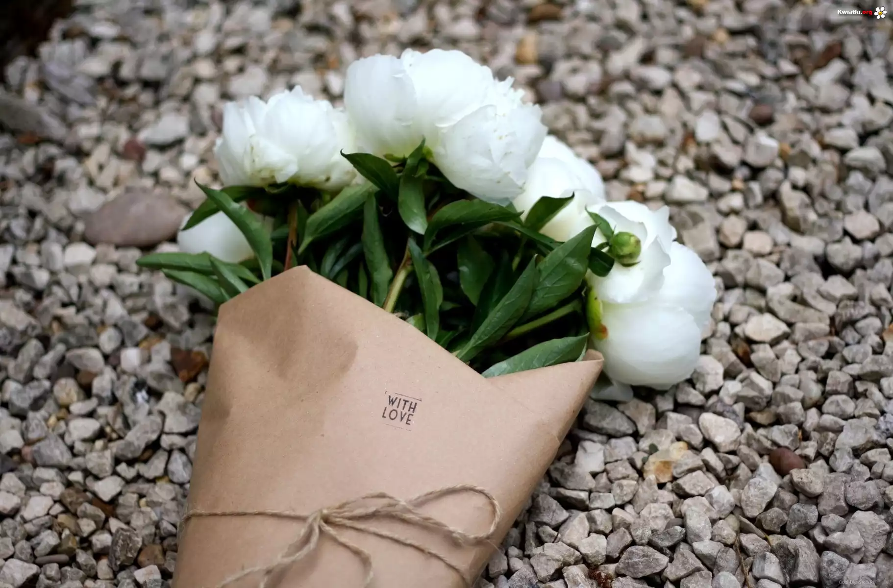 Kwiat Kamienie, Bukiet, Białe, Piwonie