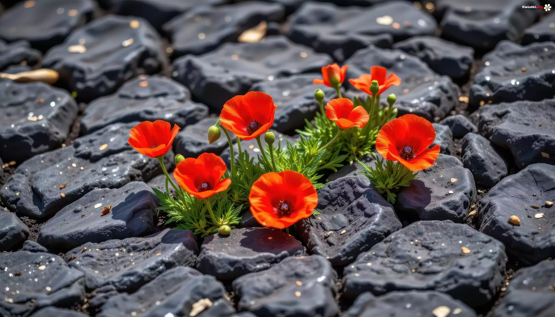 Kwiat Czerwone, Maki, Czarne, Kamienie