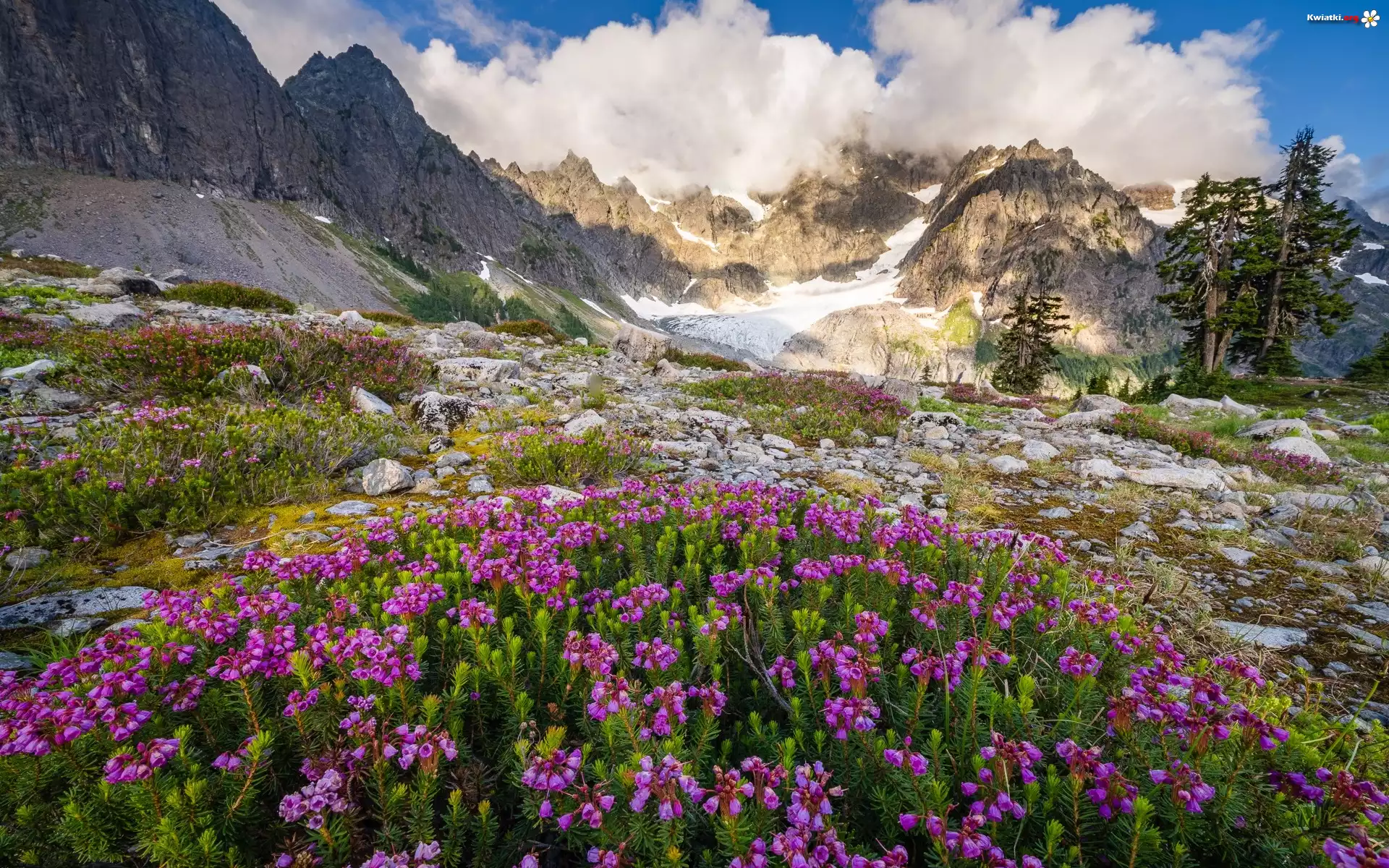 Góry, Kamienie, Drzewa, Kwiaty, Chmury - Zdjęcia