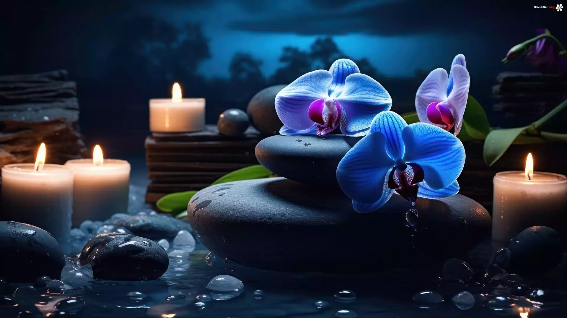 Kwiat Orchidea, Kwiaty, Storczyki, Kamienie, Świece, Grafika