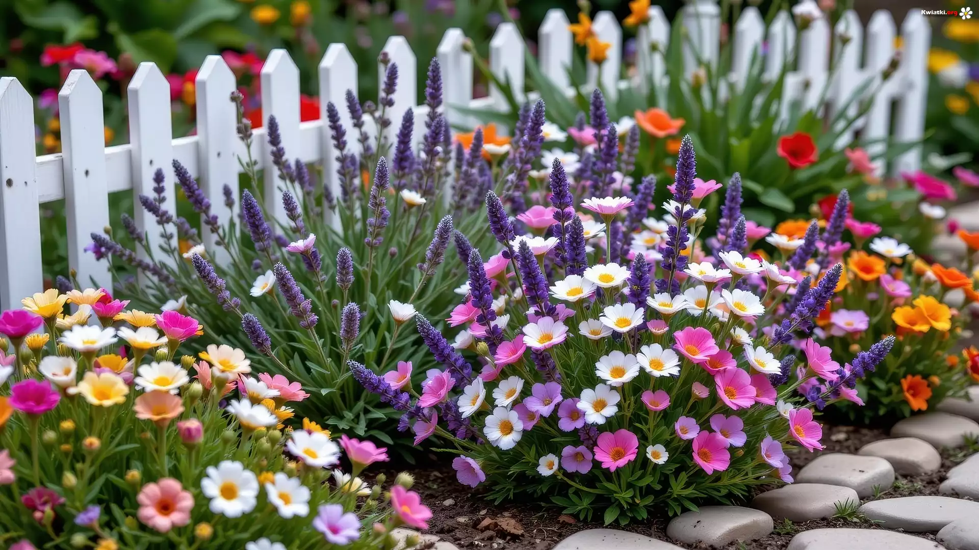 Kolorowe, Kwiaty, Płot, Kamienie - Zdjęcia