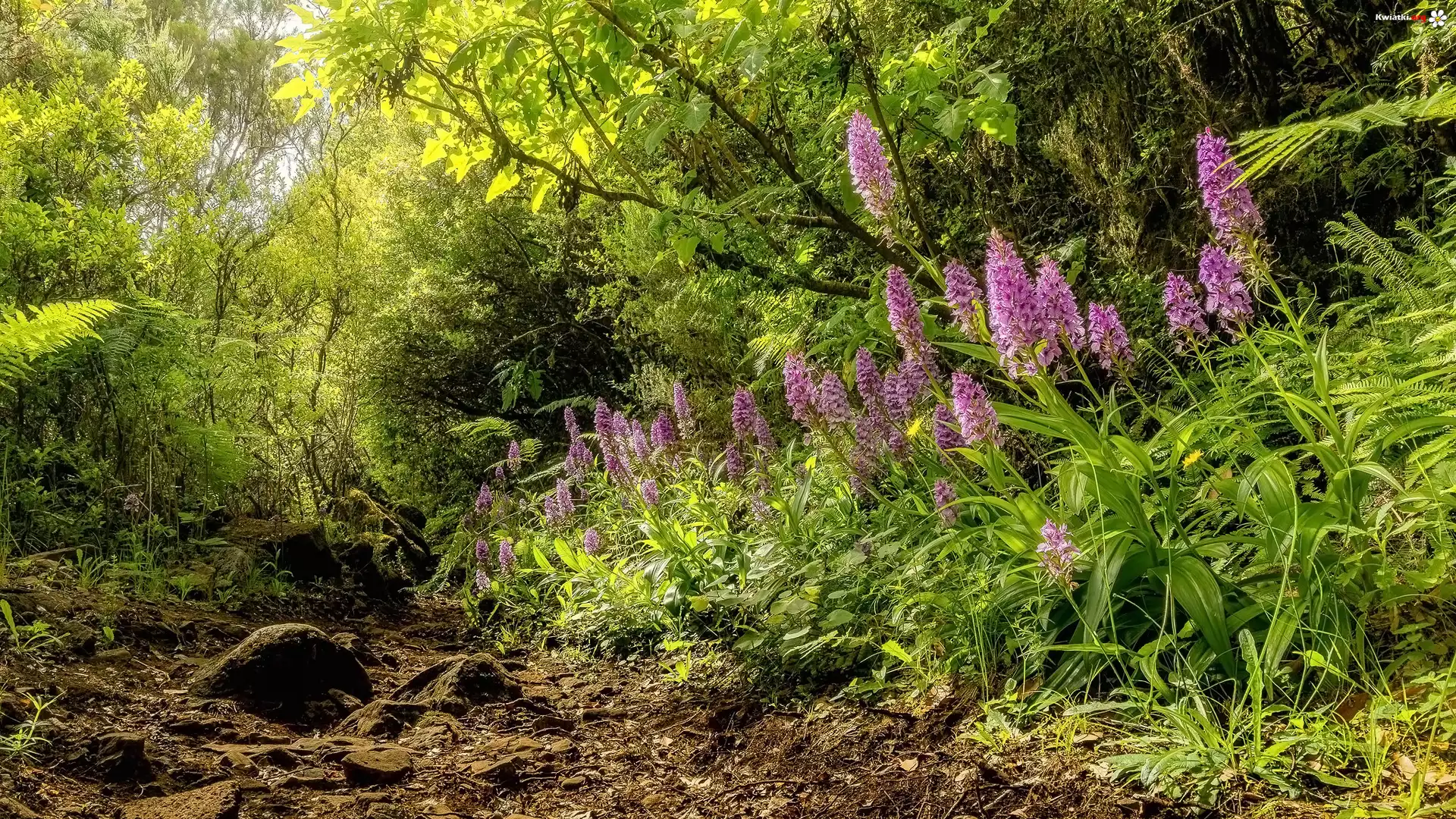 Kwiat Las, Drzewa, Kwiaty, Kamienie