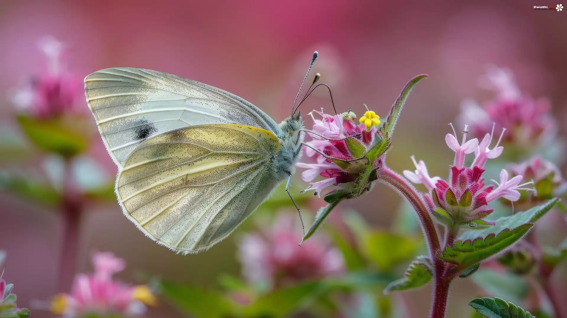 Bielinek kapustnik, Motyl, Kwiaty, Grafika - Zdjęcia