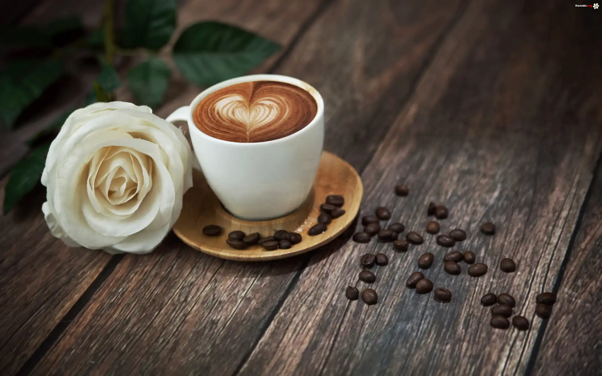 Kawa, Filiżanka, Biała, Róża - Zdjęcia
