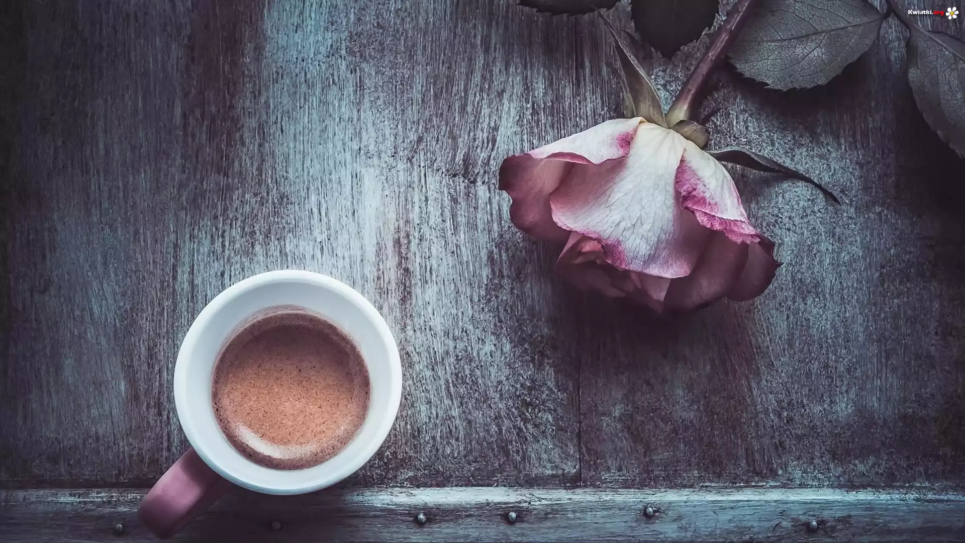Kawa, Filiżanka, Róża, Deski, Vintage - Zdjęcia