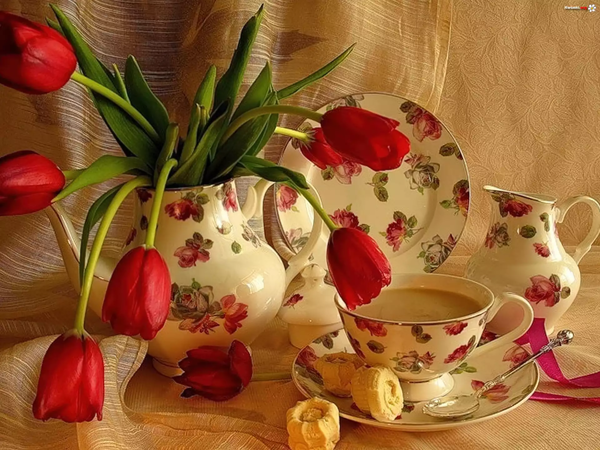 Porcelana, Kawa, Tulipany - Zdjęcia