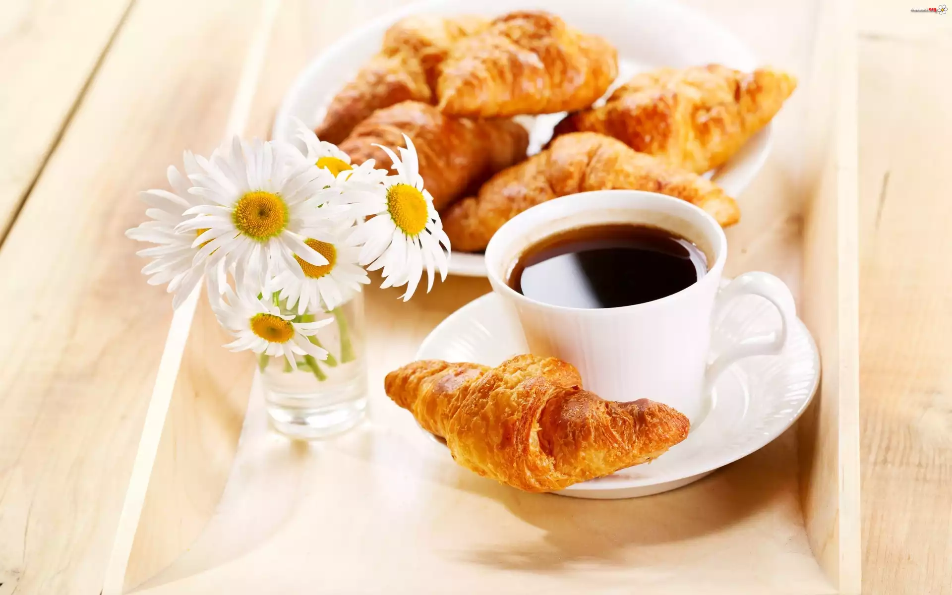 Rogaliki, Kawa, Kwiaty - Zdjęcia