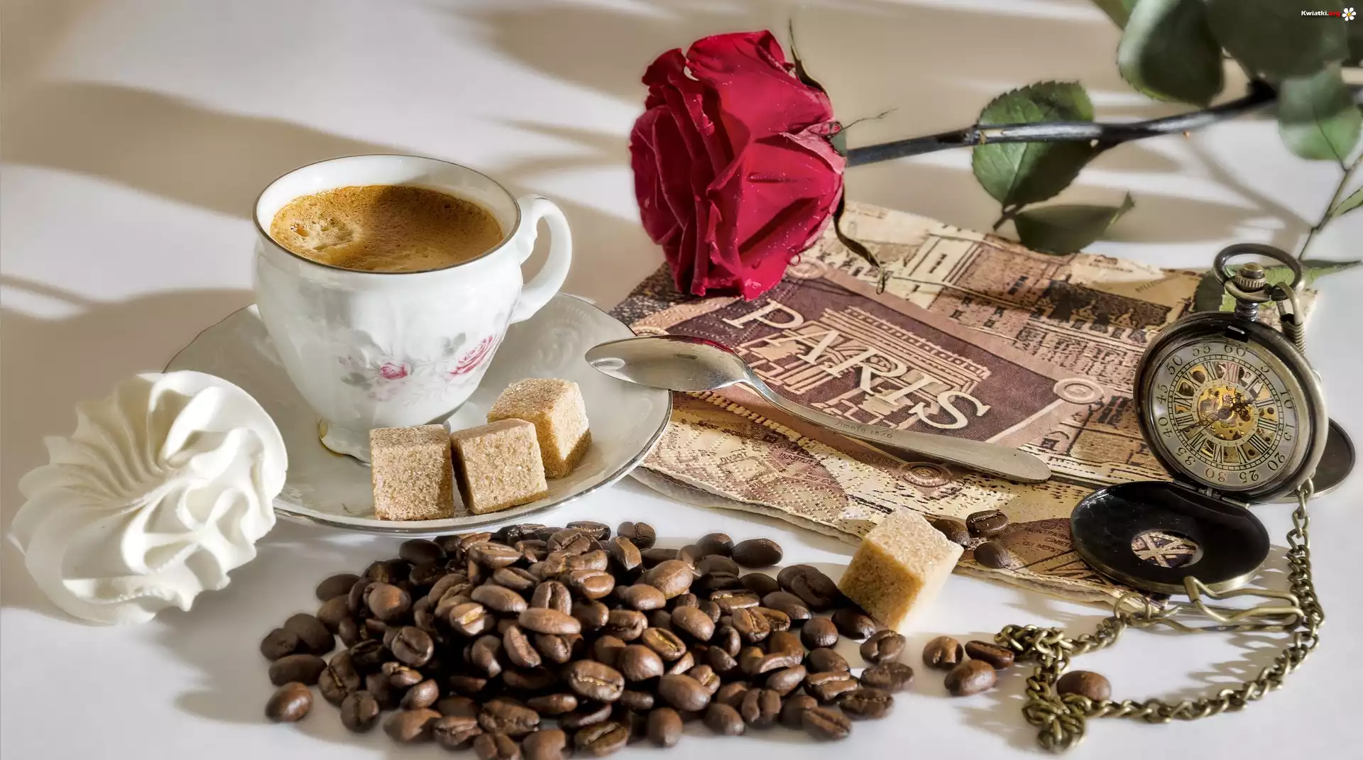 Kwiat Filiżanka, Kawy, Róża, Ciastko, Zegarek, Kieszonkowy, Kompozycja