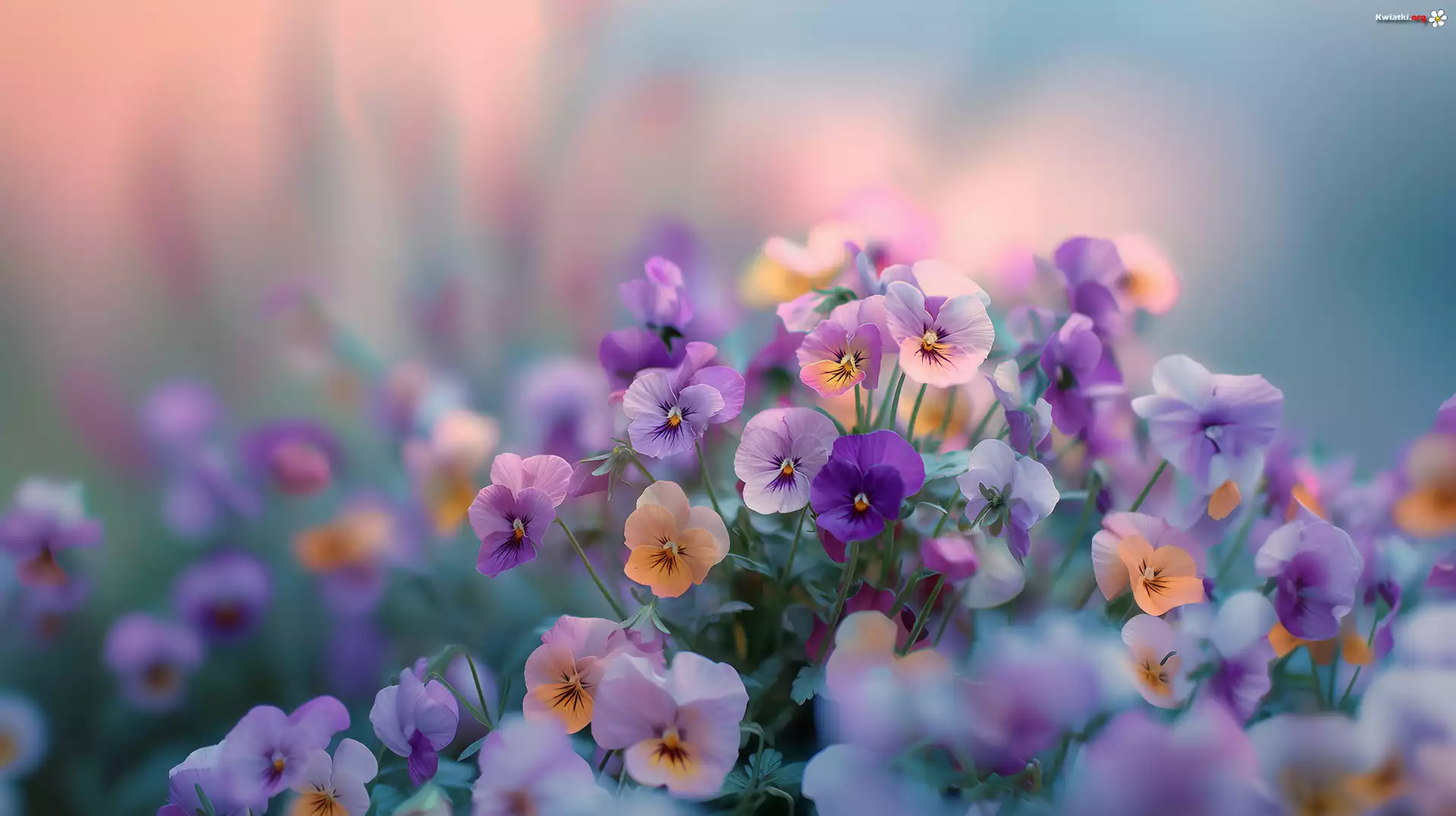 Kolorowe, Bratki, Kwiaty, Kępka, Grafika AI - Zdjęcia