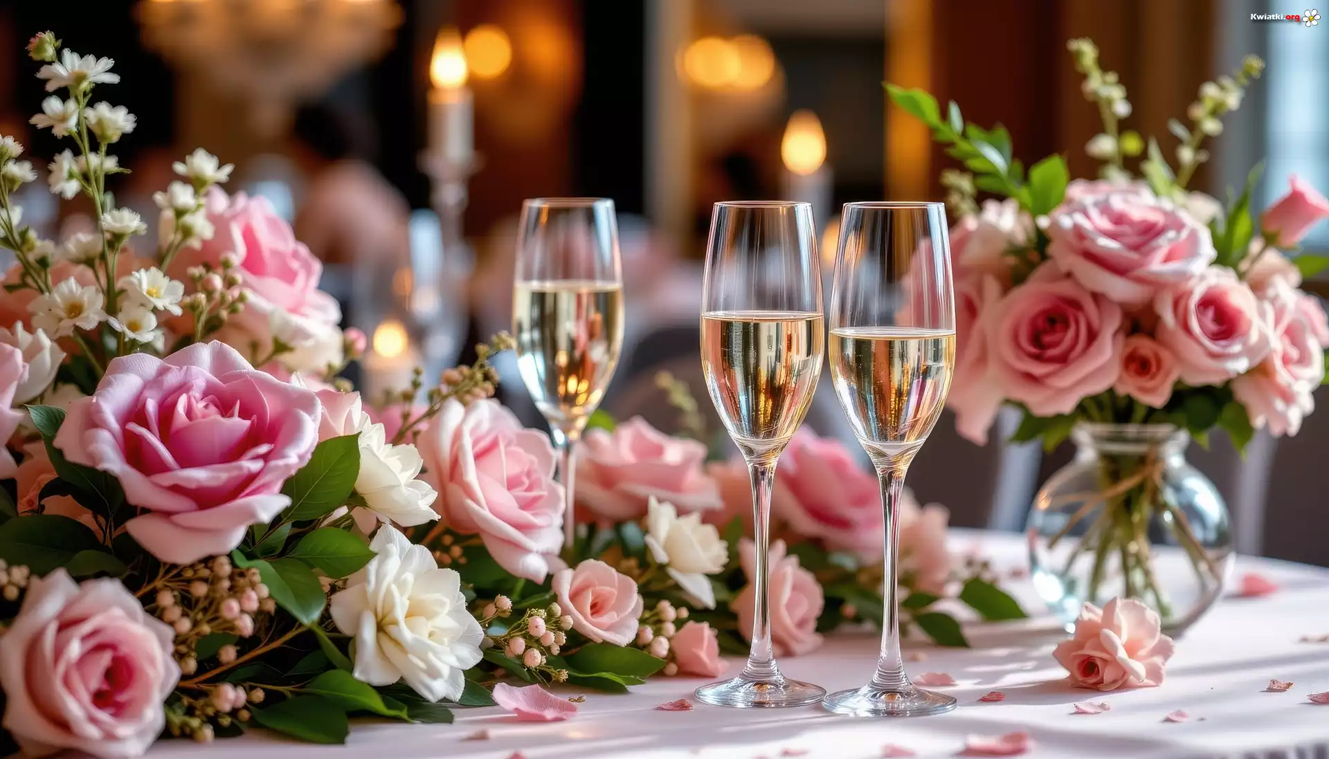 Kwiat Kwiaty, Róże, Bukiety, Kieliszki, Grafika AI