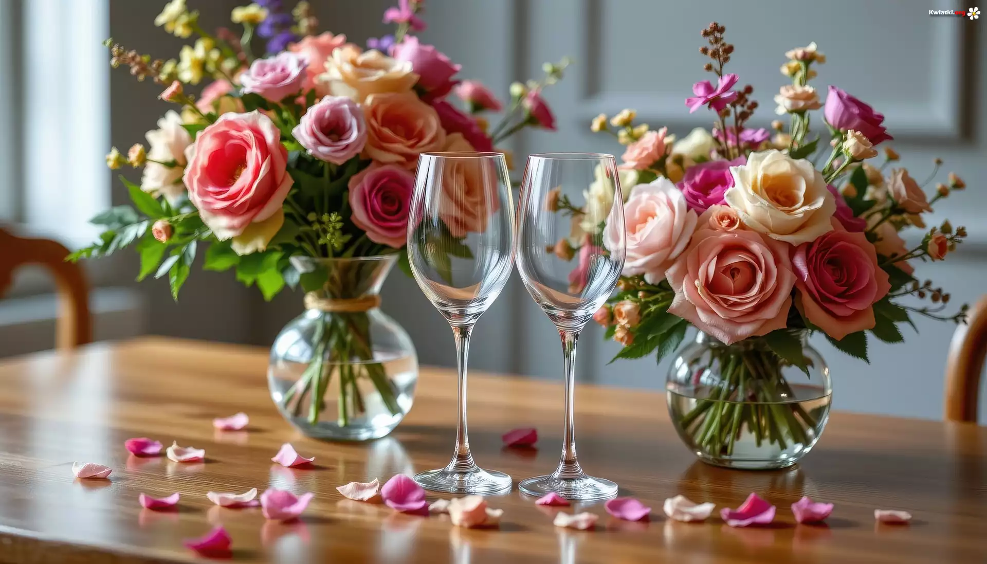 Kwiat Róże, Bukiety, Dwa, Kieliszki, Grafika AI