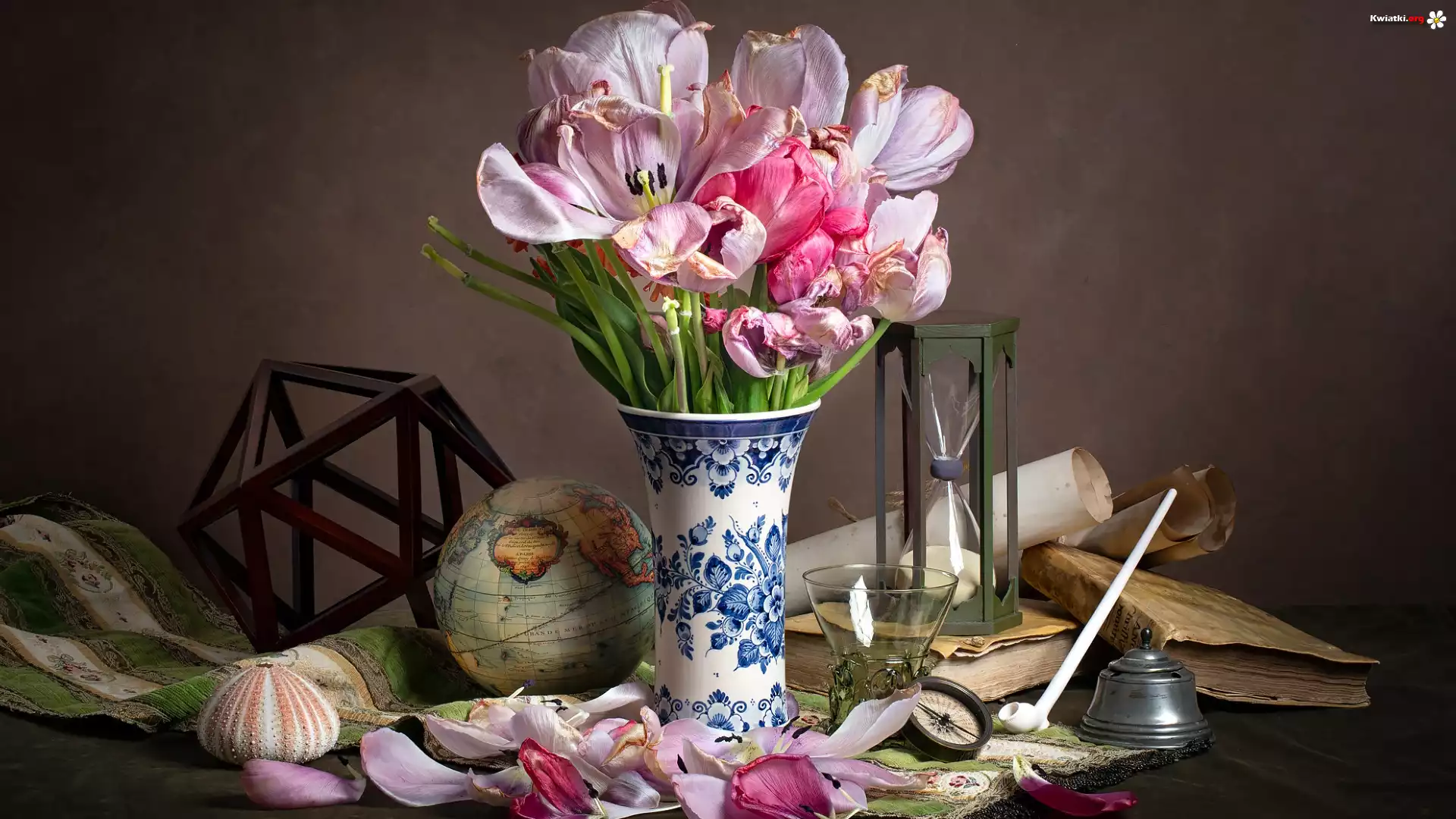 Kwiat Wazon, Przekwitające, Tulipany, Klepsydra, Globus, Kompozycja