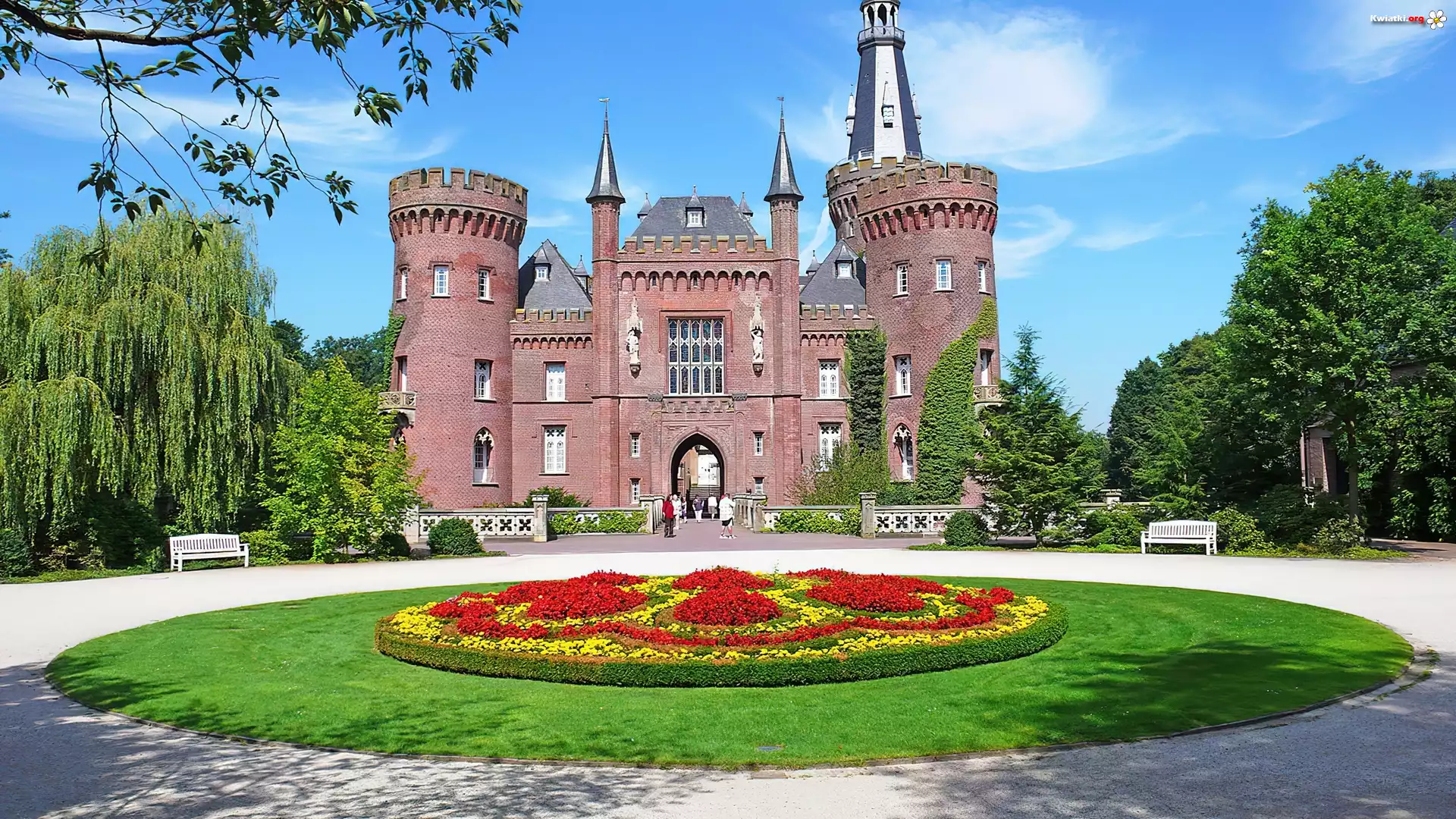 Klomb, Kwiaty, Zamek, Moyland, Niemcy - Zdjęcia