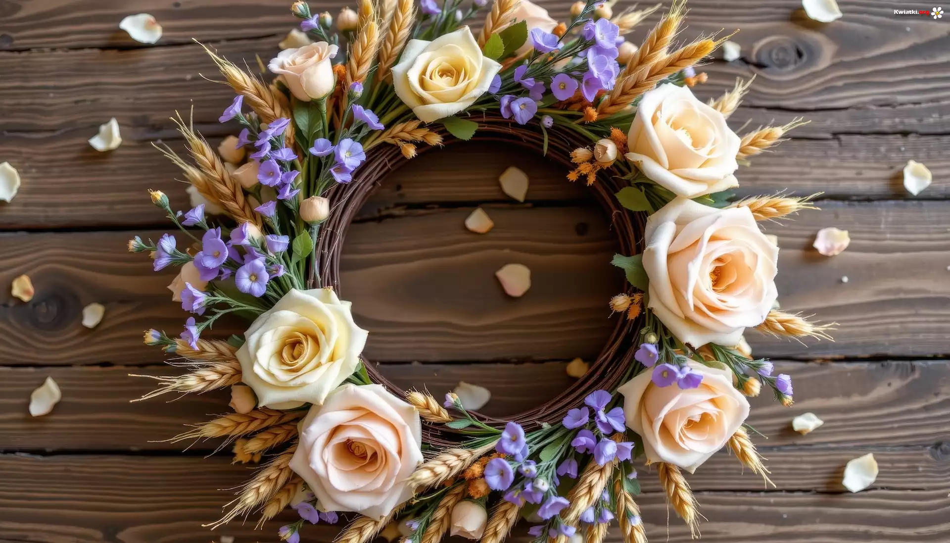 Wianek, Kwiaty, Róże, Kłosy, Deski, Dekoracja - Zdjęcia