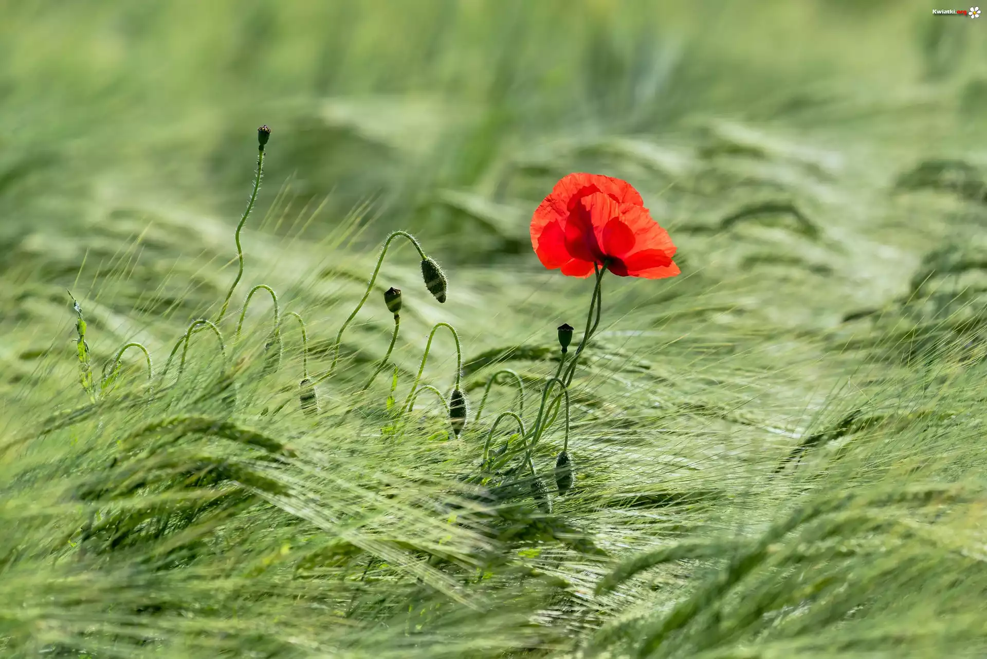Kłosy, Zboża, Kwiat, Mak, Pąki - Zdjęcia