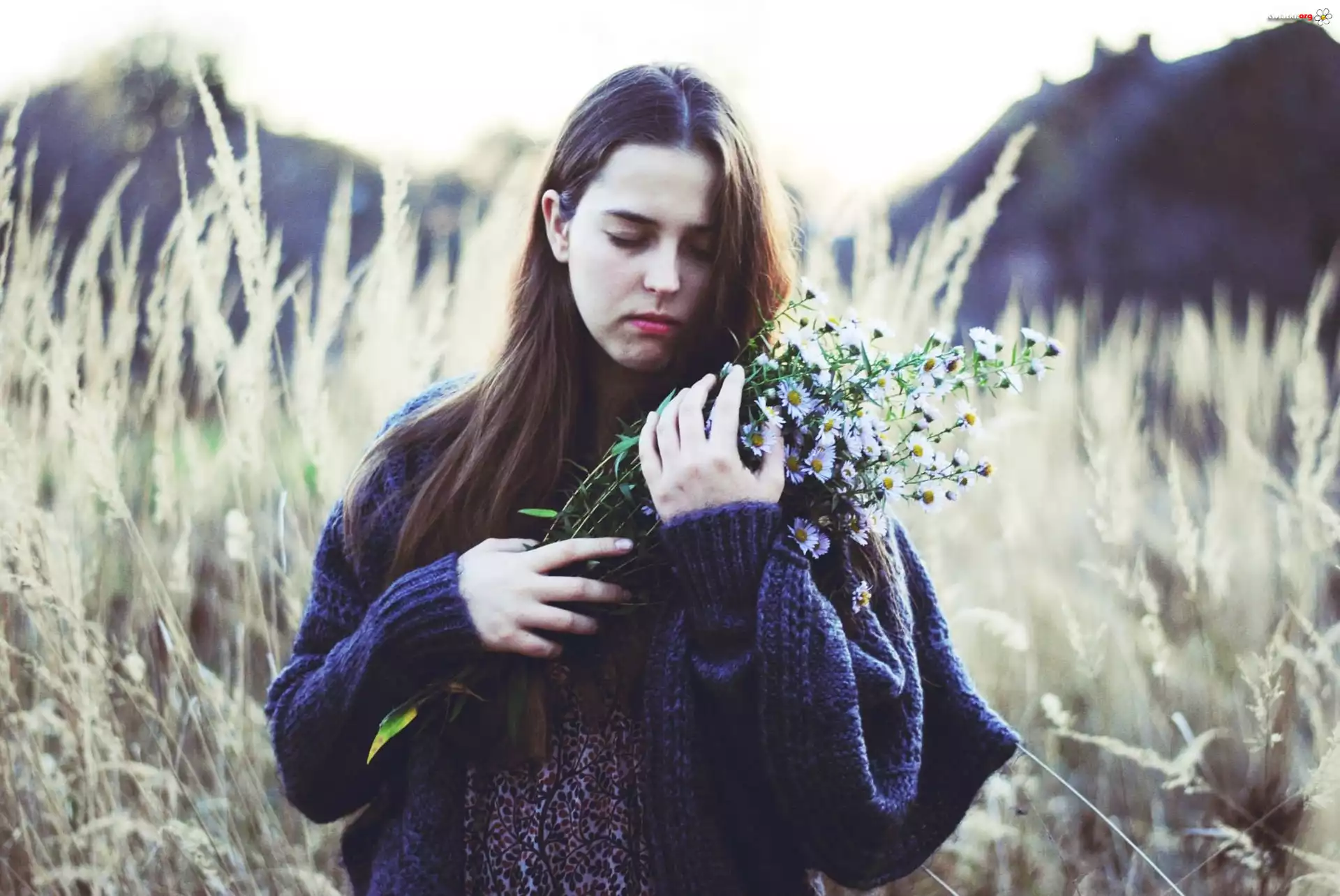 Kwiat Kobieta, Szatynka, Bukiet, Kwiatów