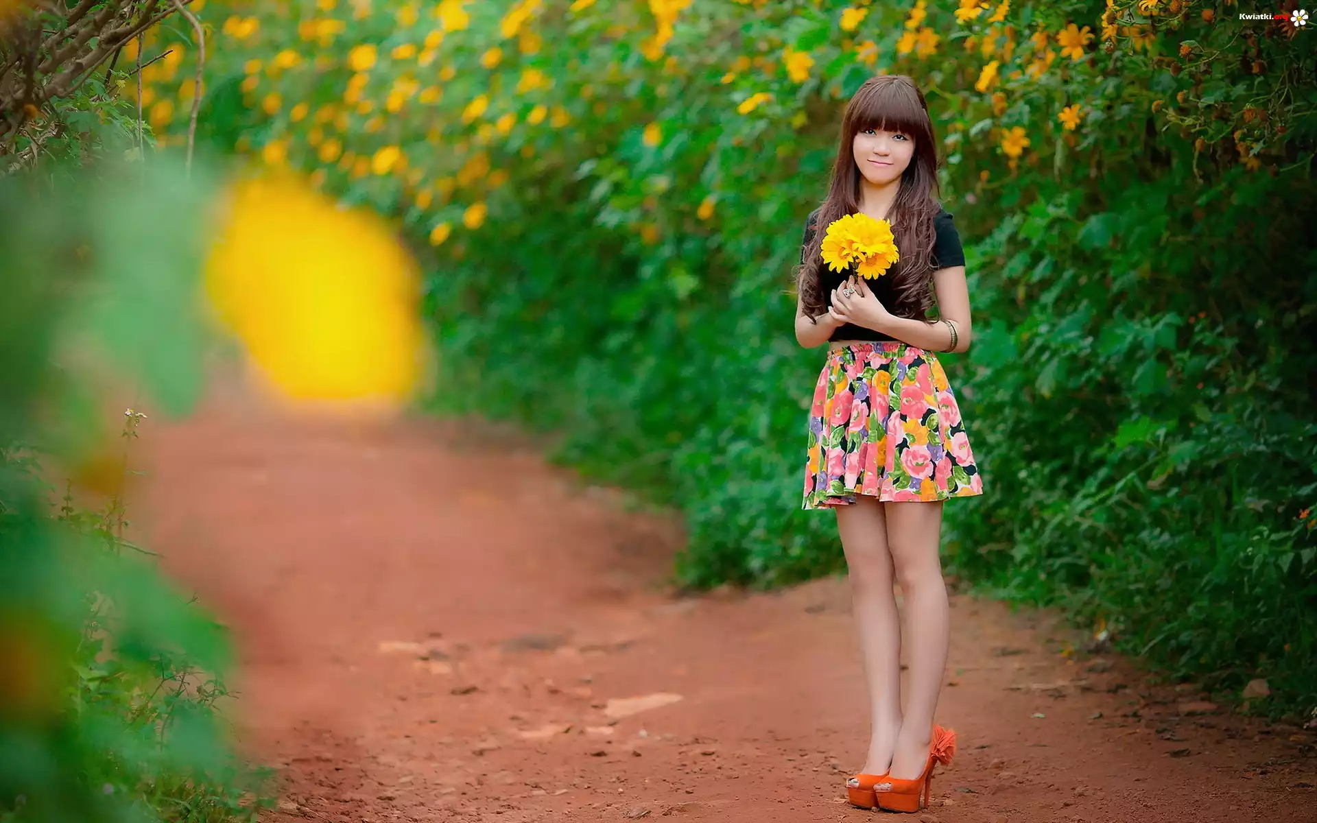 Kwiat Kobieta, Bukiet, Żółte, Gerbery, Ogród