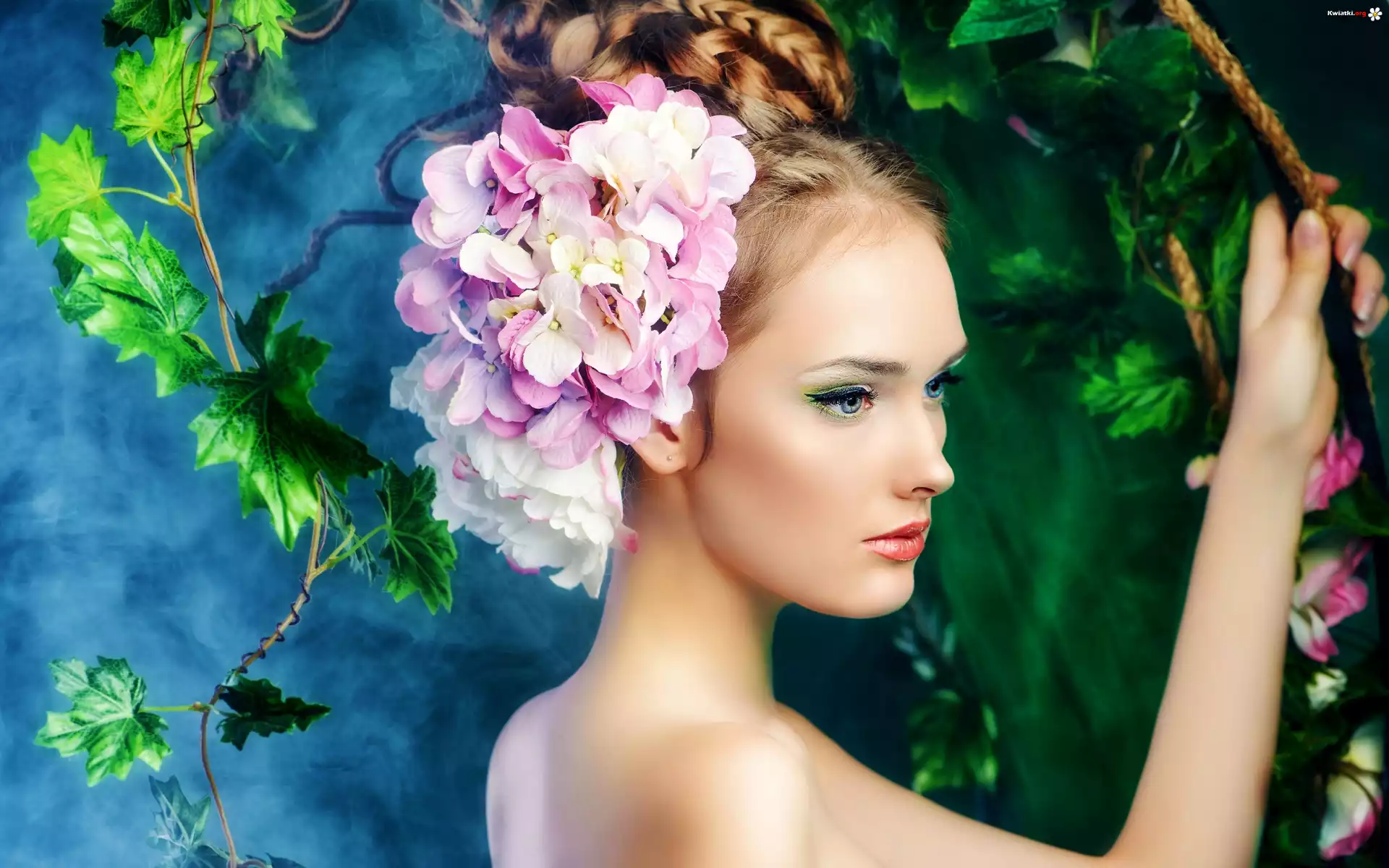 Kwiat Kobieta, Kwiaty, We, Włosach, Liście, Ogród