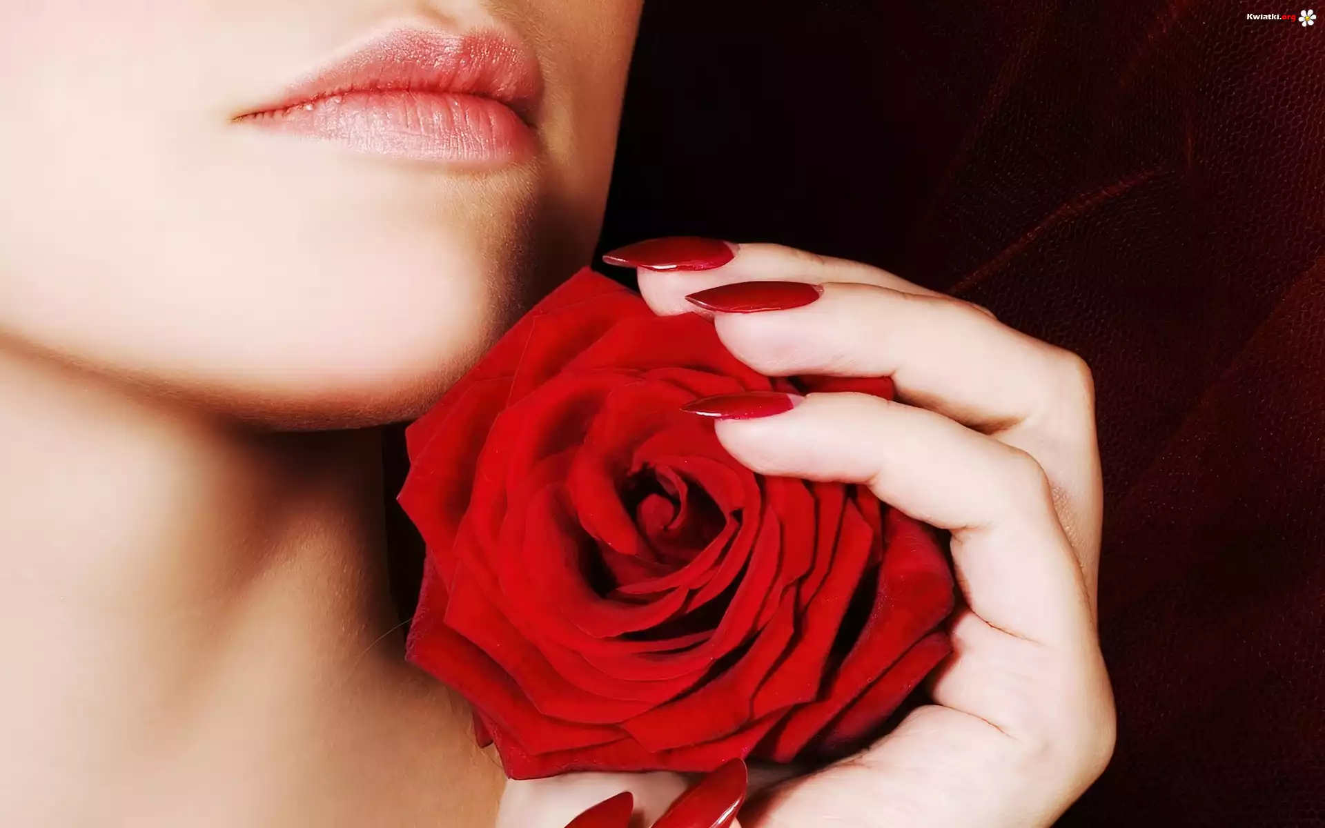 Kwiat Kobieta, Czerwona, Róża, Dłoń
