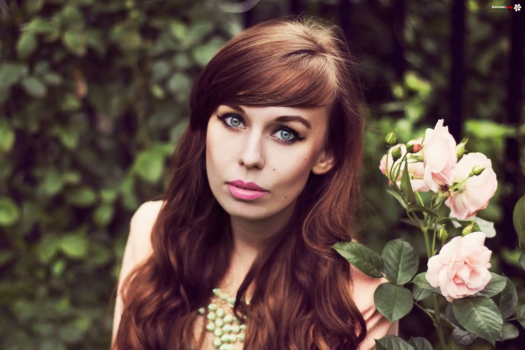 Kwiat Kobieta, Szatynka, Różowe, Róże