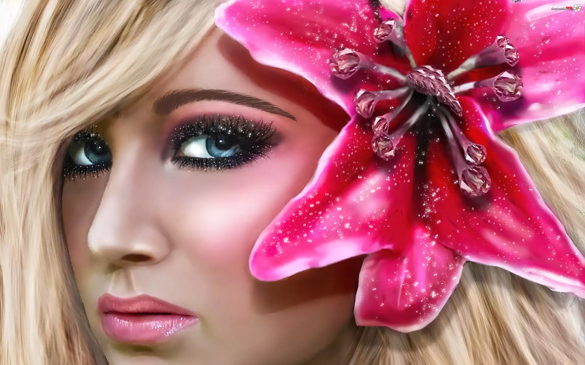 Kobieta, Kwiat, Oczy, Rzęsy, Usta - Zdjęcia