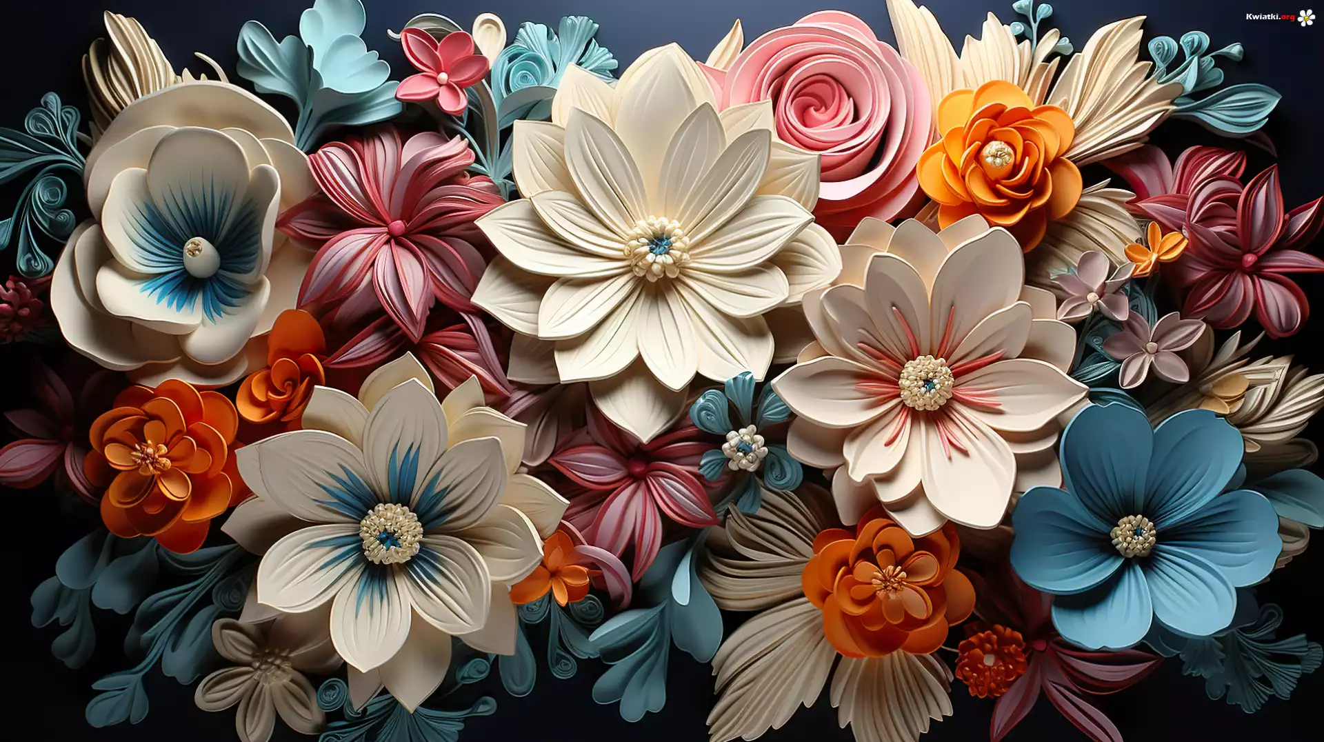 Kwiaty, Kolorowe, Białe, Niebieskie, Grafika - Zdjęcia
