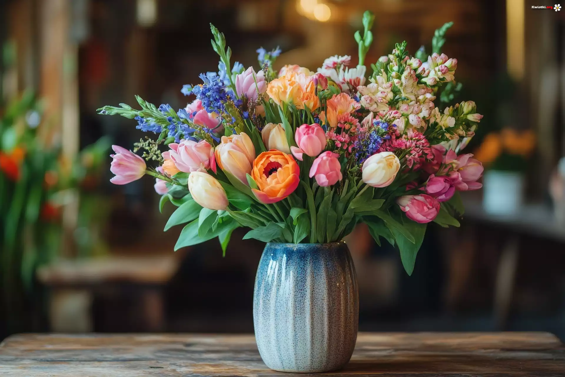 Kwiat Kwiaty, Kolorowe, Bukiet, Tulipany, Wazon