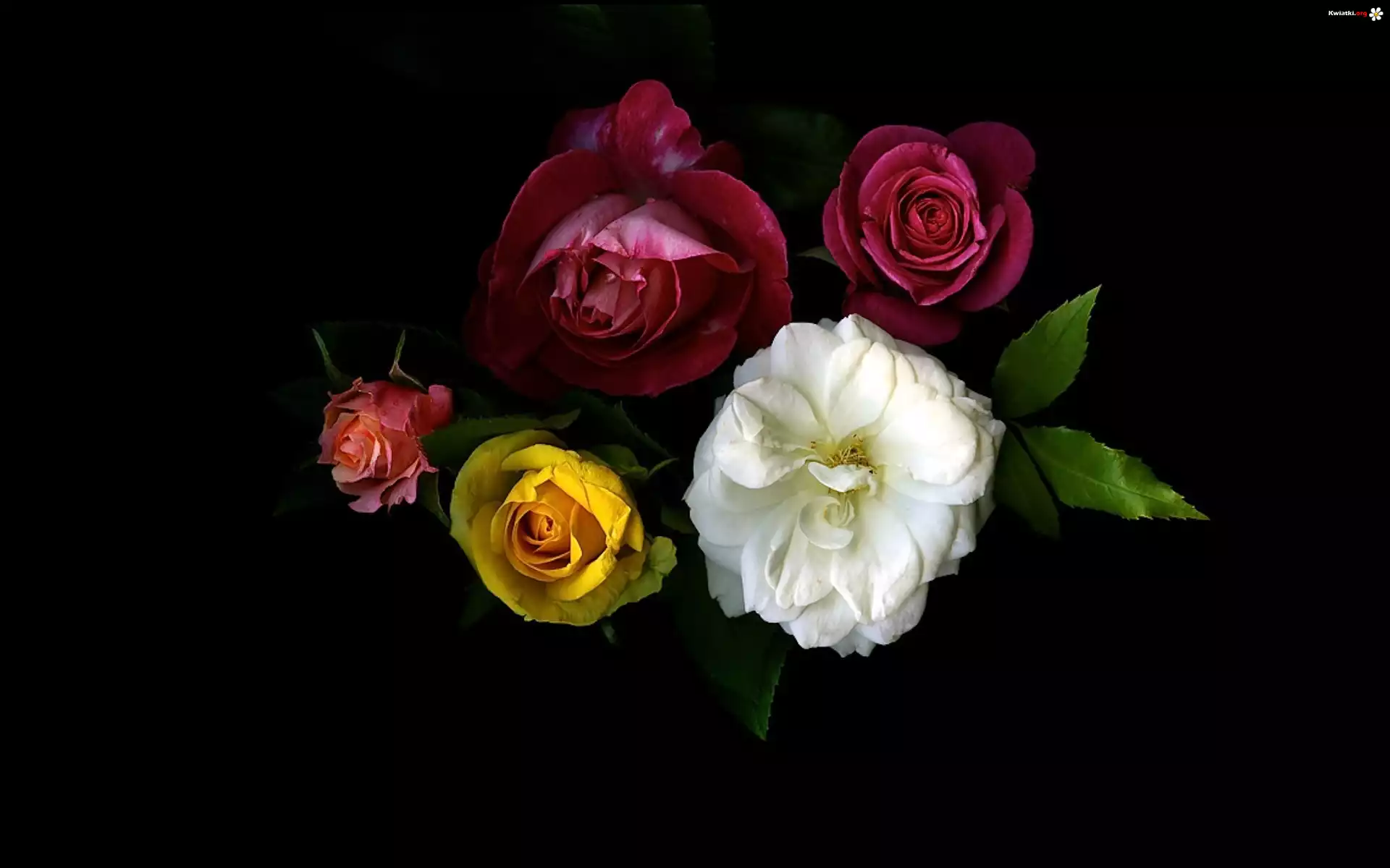 Kolorowe, Róże, Czarne, Tło - Zdjęcia