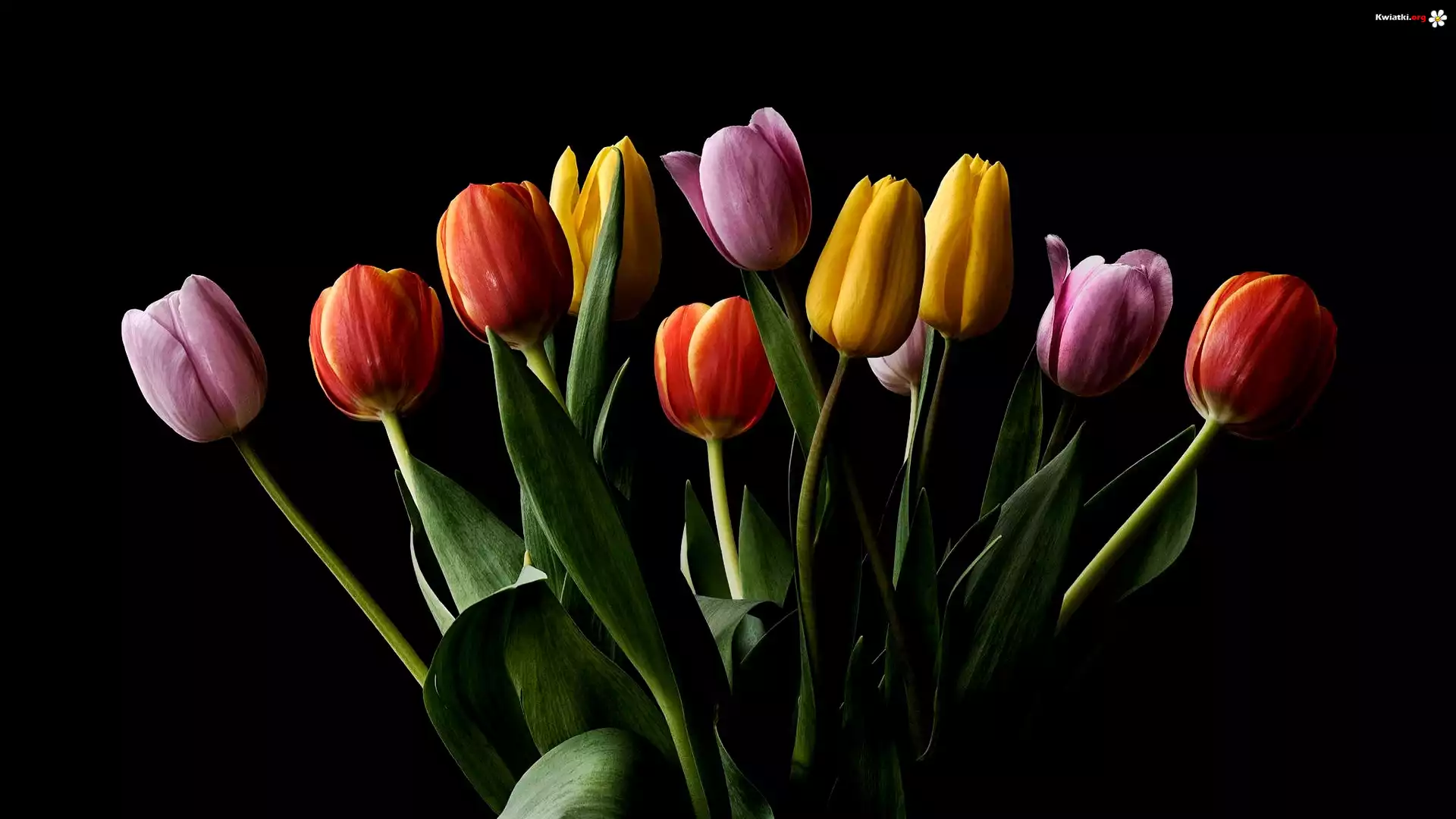 Kwiat Kolorowe, Tulipany, Czarne tło
