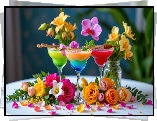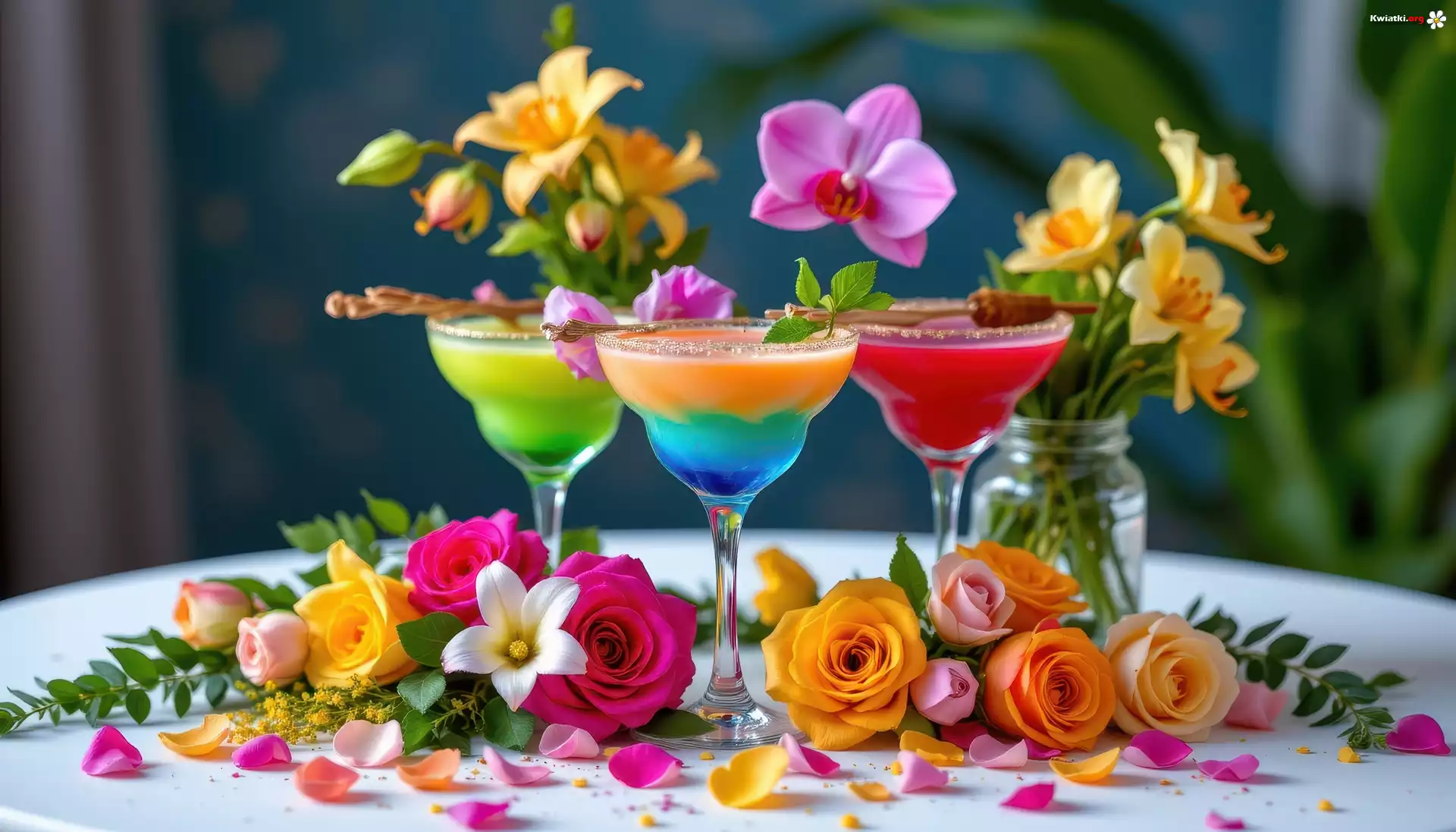 Kwiat Trzy, Kolorowe, Drinki, Kwiaty, Stół