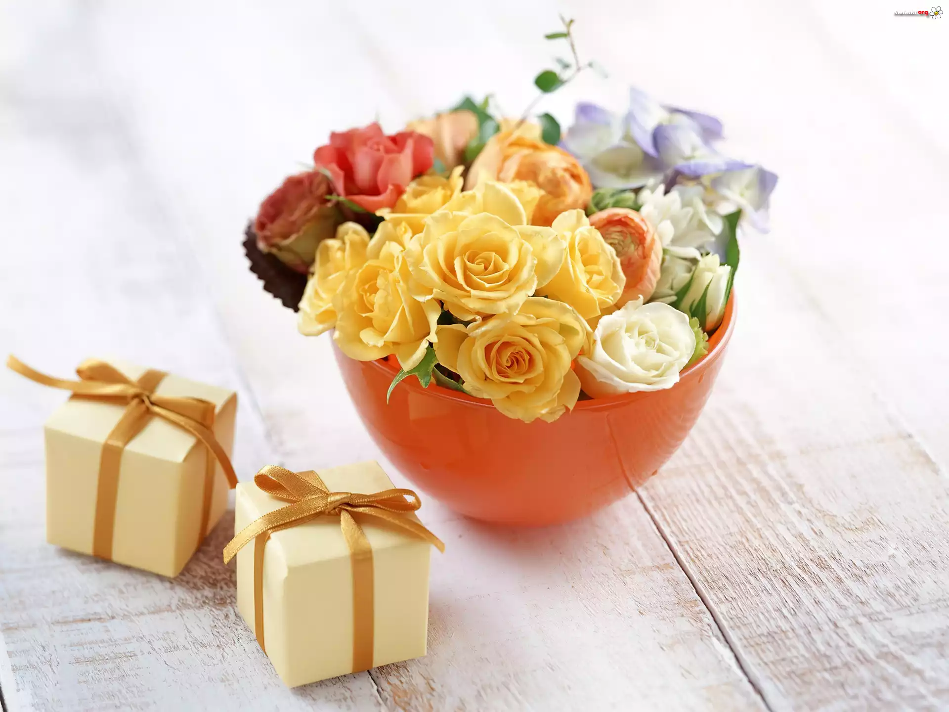 Kolorowe, Różyczki, Dwa, Prezenciki - Zdjęcia