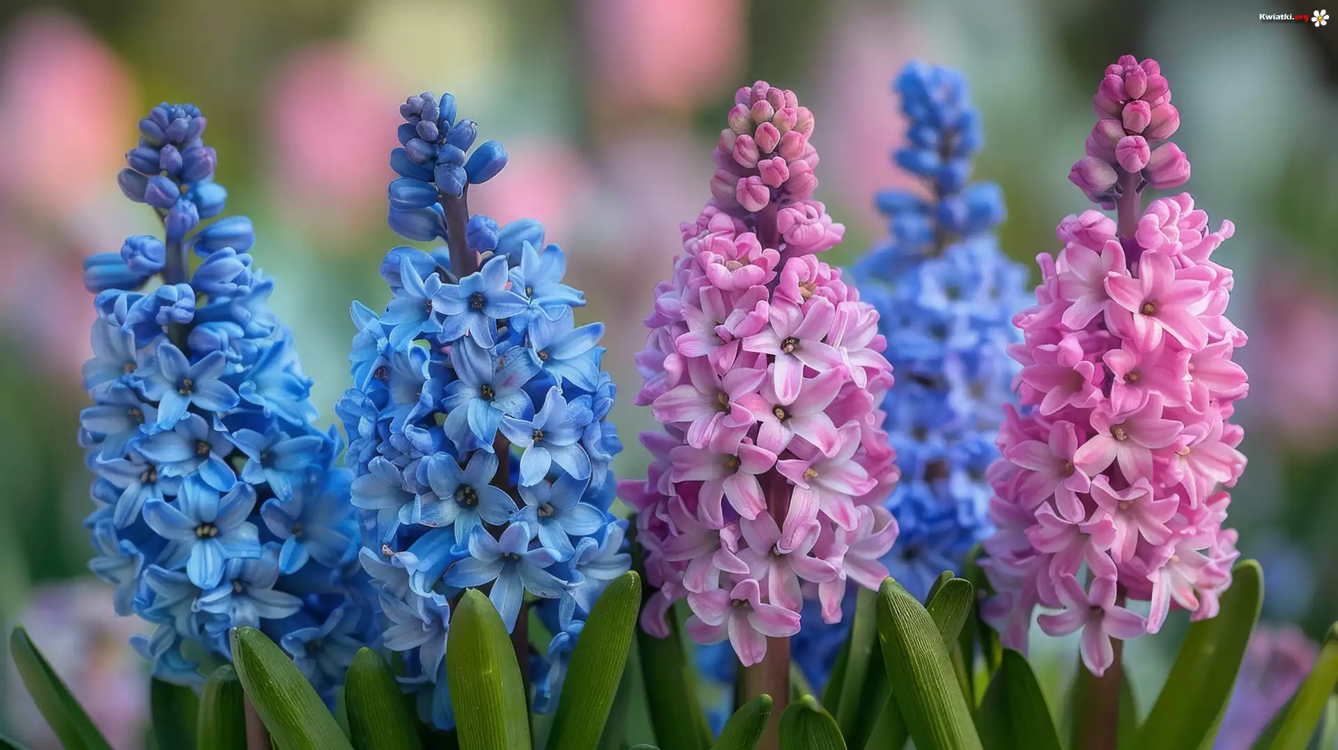 Niebieskie, Różowe, Hiacynty, Kolorowe, Kwiaty, Grafika - Zdjęcia