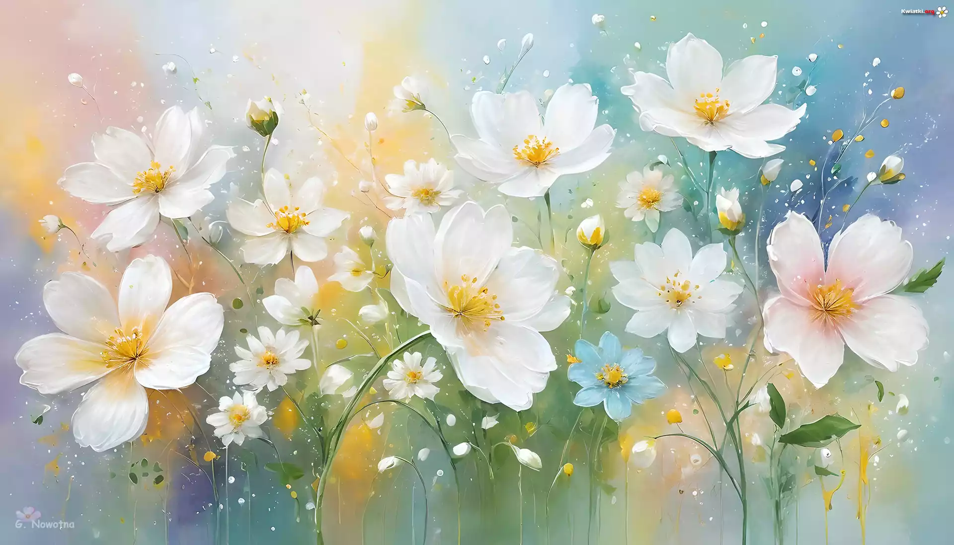 Białe, Kwiaty, Jasne, Kolorowe, Tło, Grafika - Zdjęcia