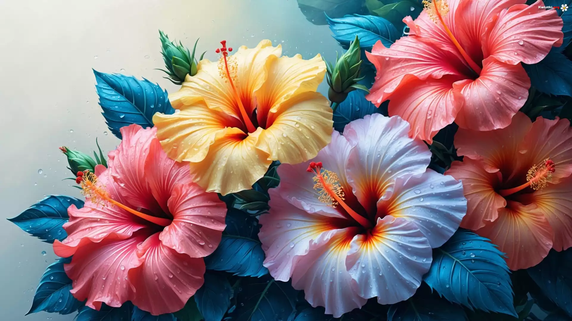Kwiat Kwiaty, Kolorowe, Hibiskusy, Krople, Zbliżenie