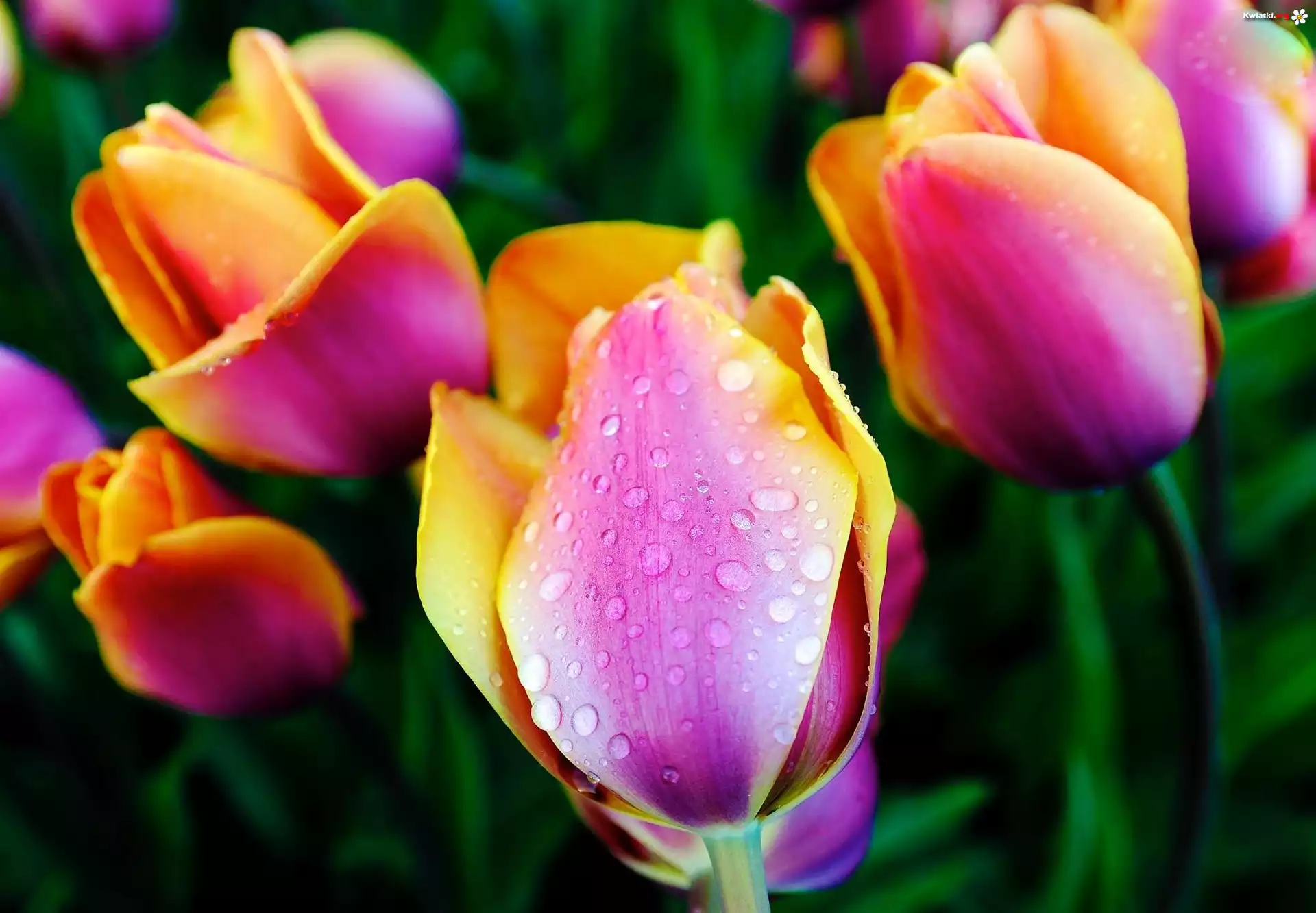 Kwiat Kolorowe, Tulipany, Krople, Rosy