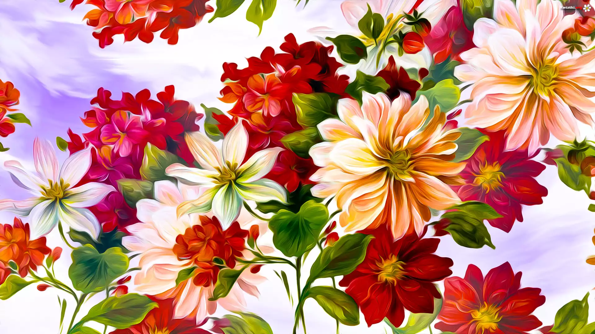 Kolorowe, Czerwone, Kwiaty, Grafika - Zdjęcia