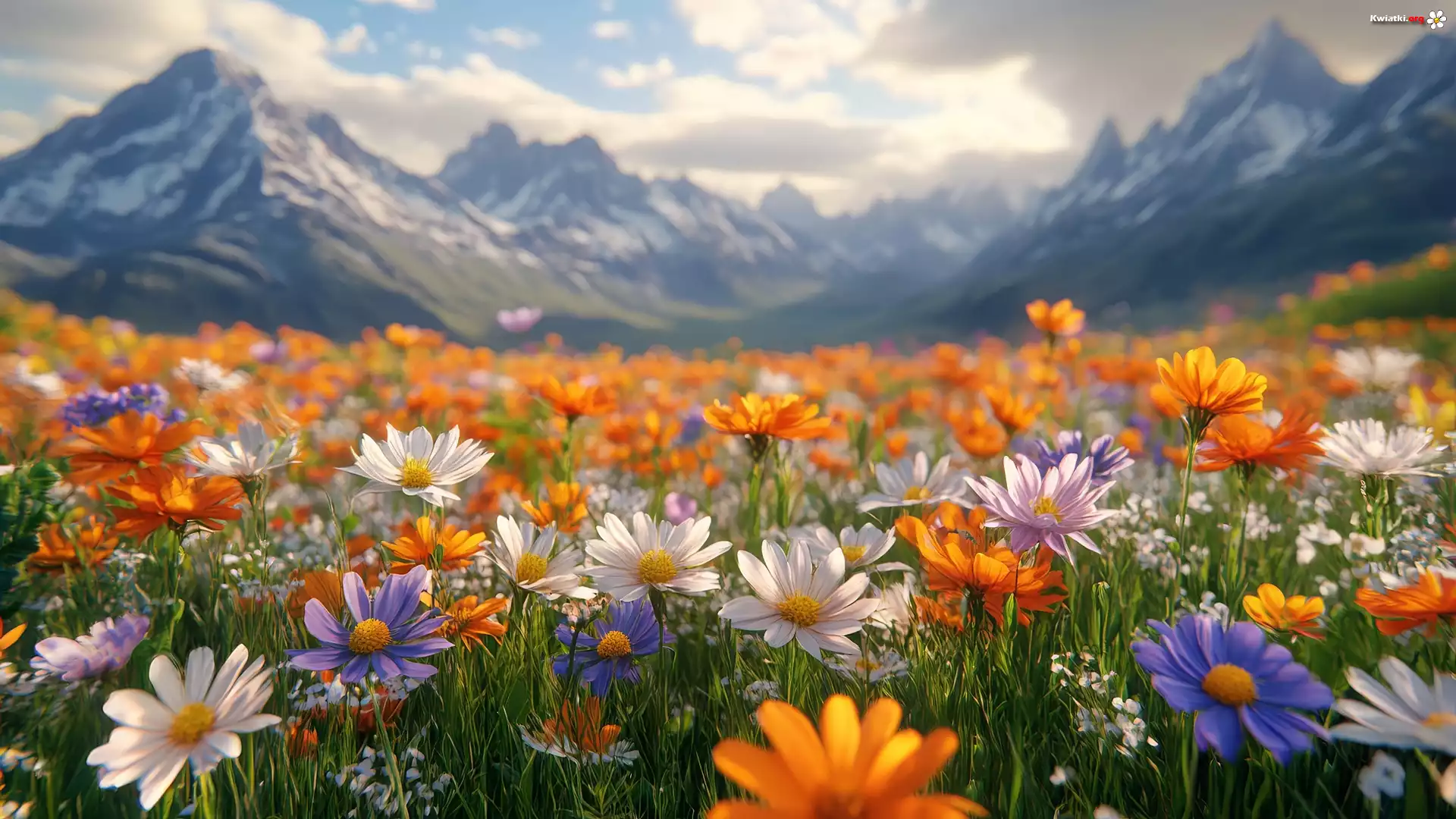 Łąka, Kolorowe, Kwiaty, Góry, Grafika - Zdjęcia