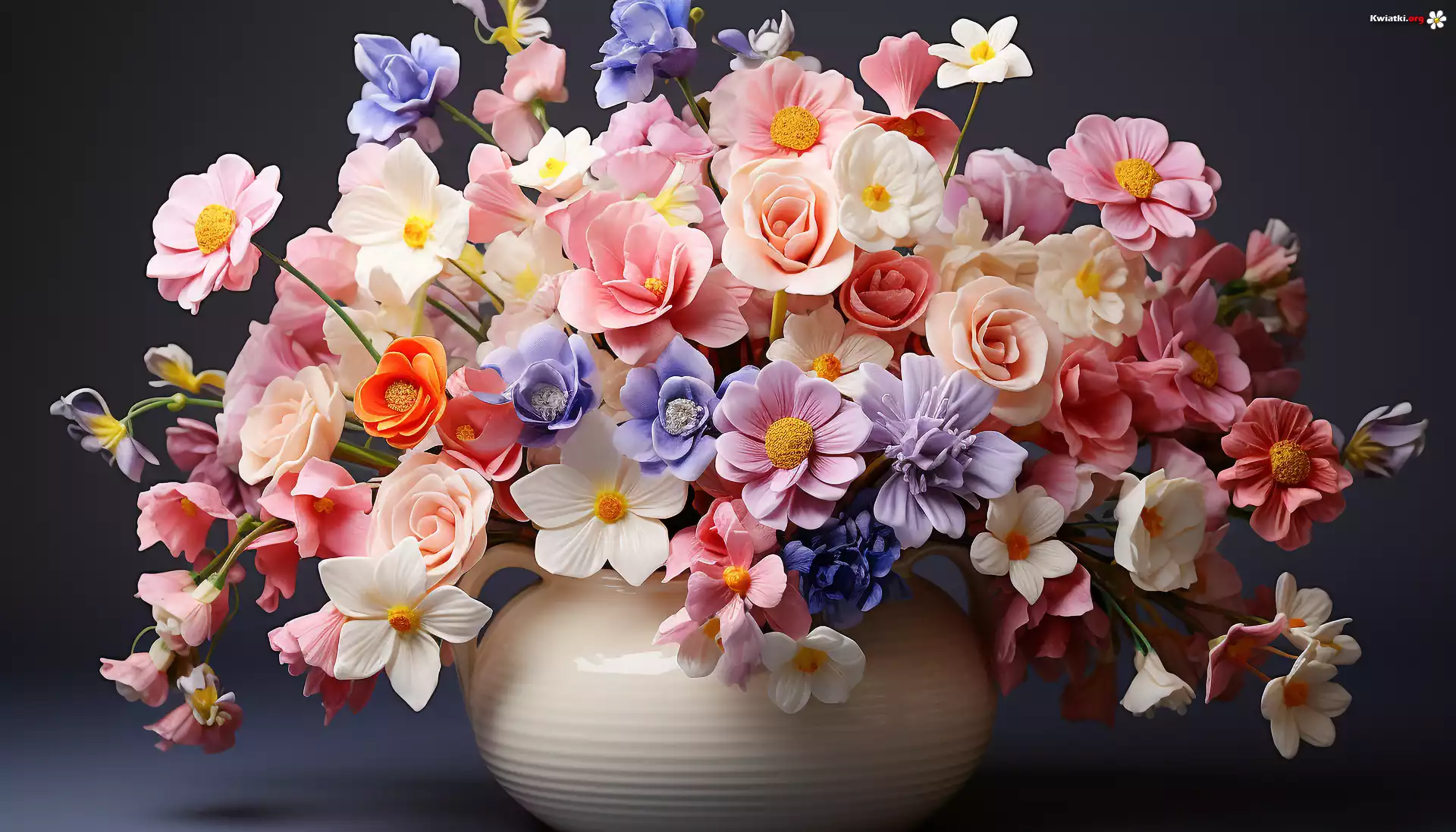 Bukiet, Kolorowe, Kwiaty, Wazon, Grafika - Zdjęcia