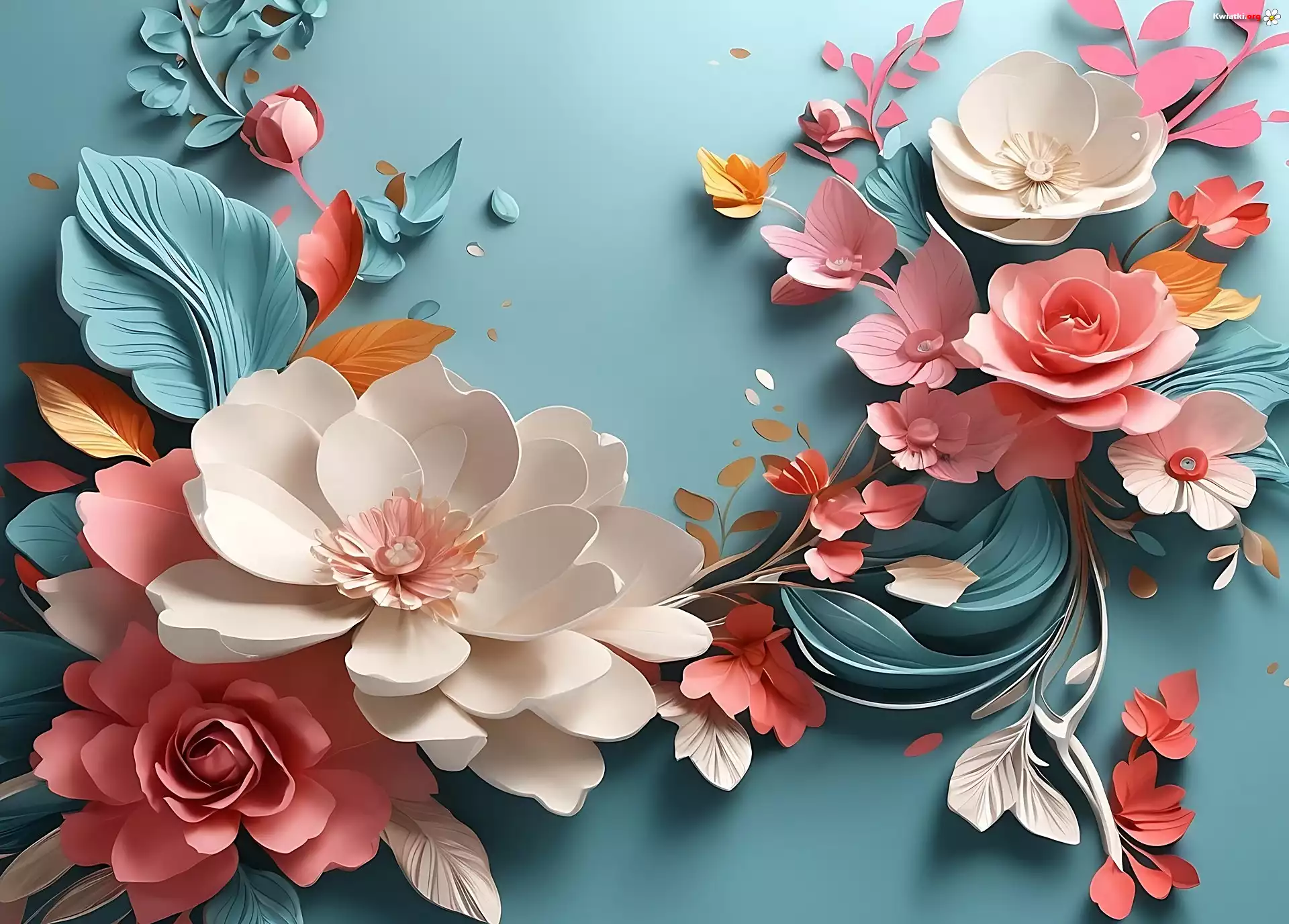 Grafika, Kolorowe, Kwiaty, Niebieskie, Tło - Zdjęcia