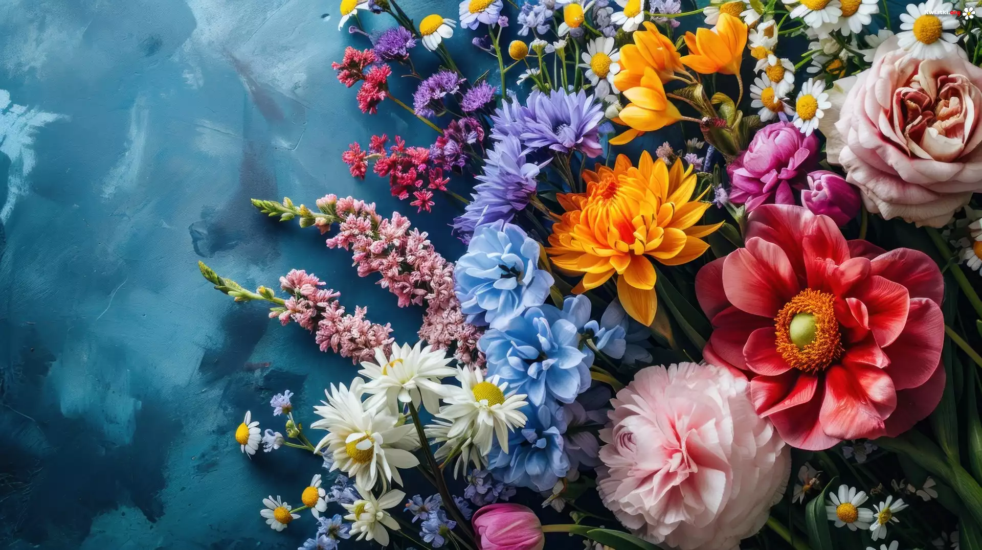 Kwiat Kompozycja, Kolorowe, Kwiaty, Niebieskie, Tło